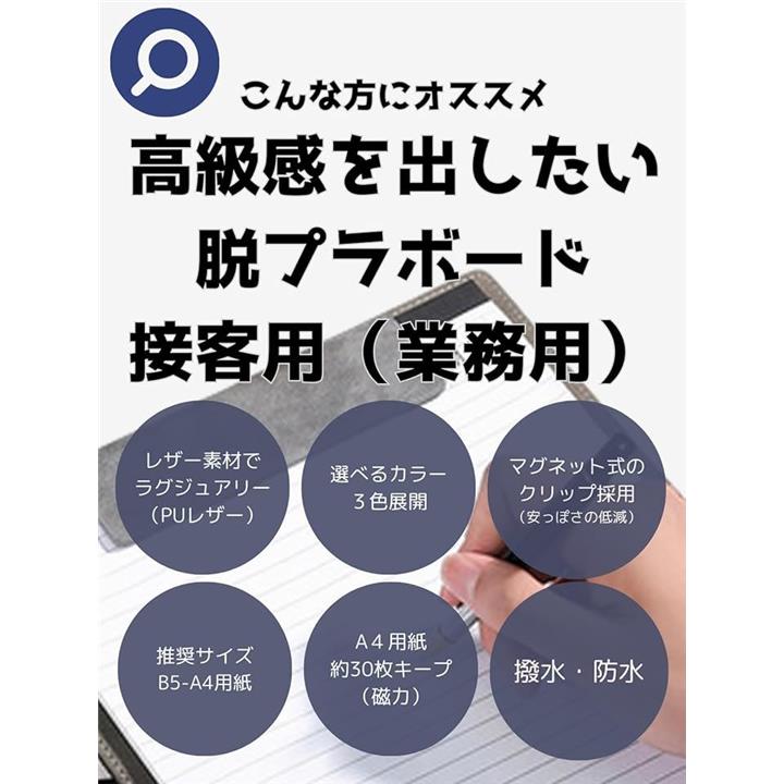 クリップボード A4サイズ PUレザー マグネット式, ビジネス 学業 ホテル ディーラー (タイプB-ブラック) |