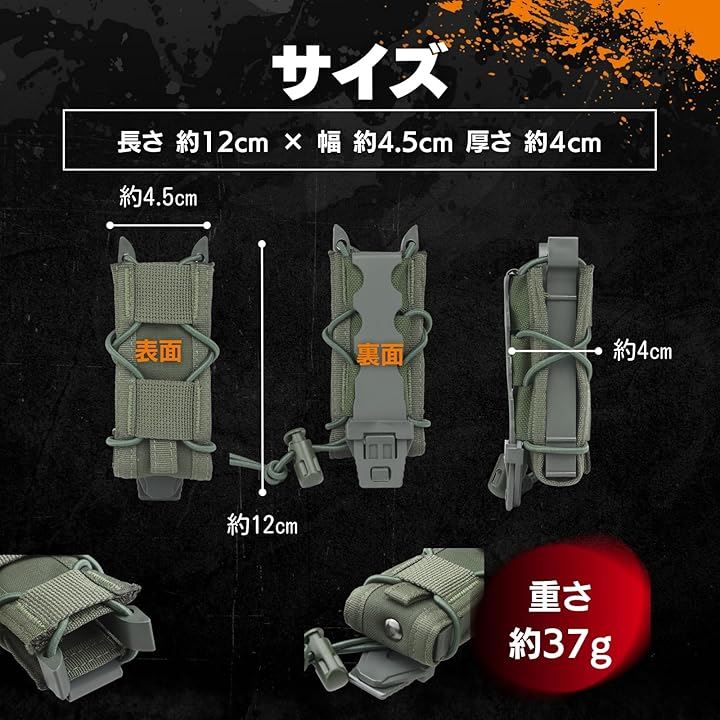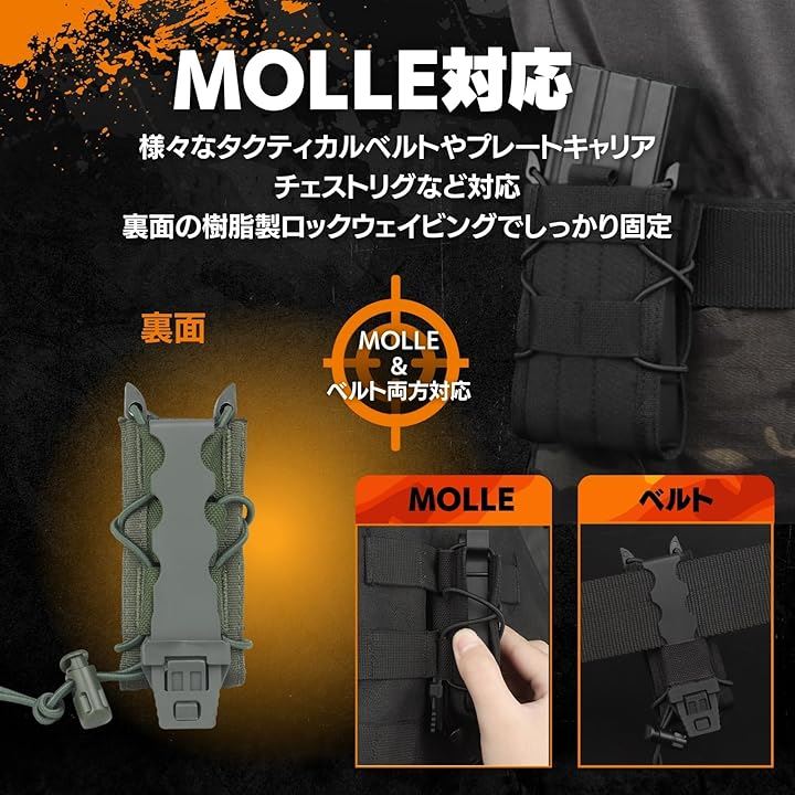 「MOLLEとベルトに対応」MOLLE(モール)付きのチェストリグやプレキャリでも普通のベルトにも取付け可能です