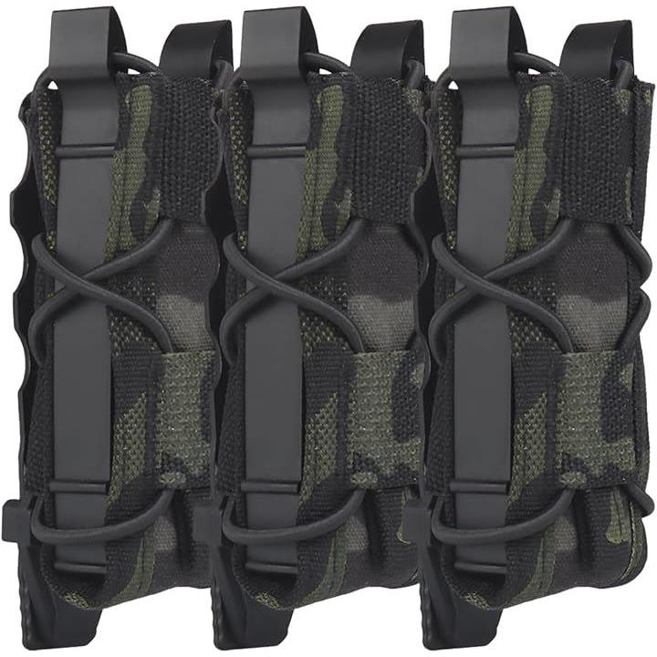 MILQUEST マガジンポーチ マグポーチ 「TACOスタイル」 ハンドガン シングルカラム~デザートイーグル、MP7など対応 MOLLE ベルト 両方対応 サバゲー CORDURA 実物ナイロン仕様 (ブラック迷彩3個セット) |