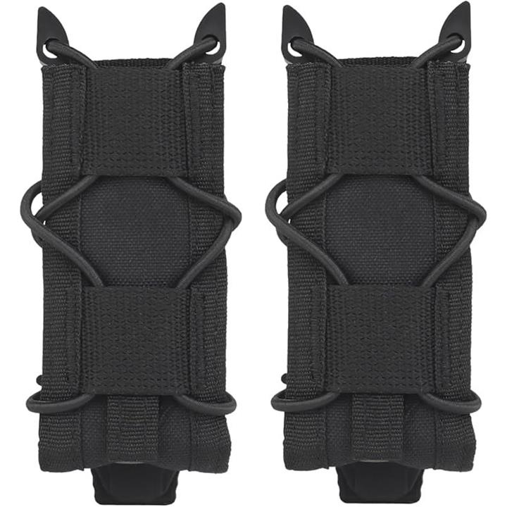 MILQUEST マガジンポーチ マグポーチ 「TACOスタイル」 ハンドガン シングルカラム~デザートイーグル、MP7など対応 MOLLE ベルト 両方対応 サバゲー CORDURA 実物ナイロン仕様 (ブラック2個セット) |