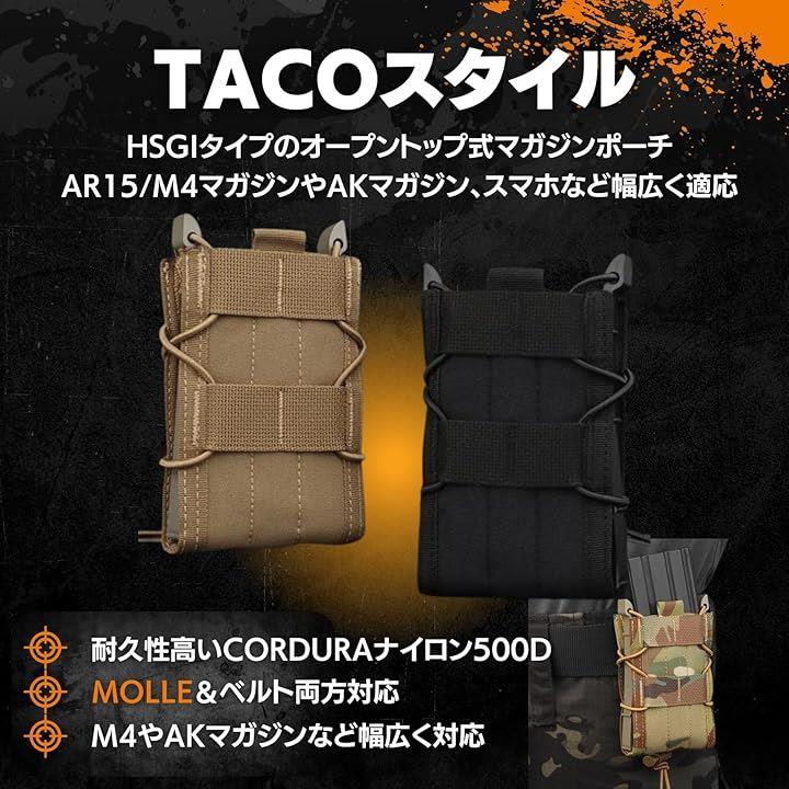 MILQUEST マガジンポーチ マグポーチ 「TACOスタイル」 M4 AK 対応 MOLLE ベルト 両方対応 サバゲー CORDURA 実物ナイロン仕様 (ブラック) |
