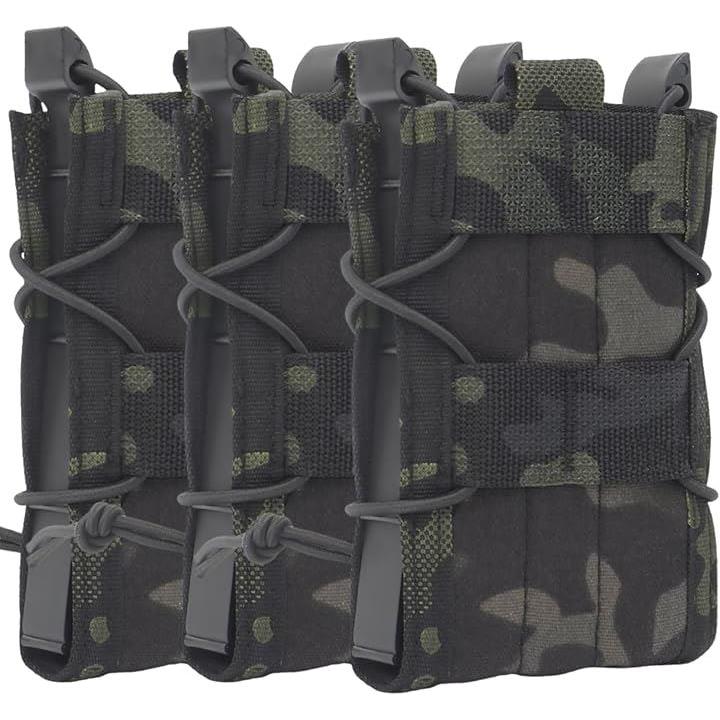MILQUEST マガジンポーチ マグポーチ 「TACOスタイル」 M4 AK 対応 MOLLE ベルト 両方対応 サバゲー CORDURA 実物ナイロン仕様 (ブラック迷彩3個セット) |