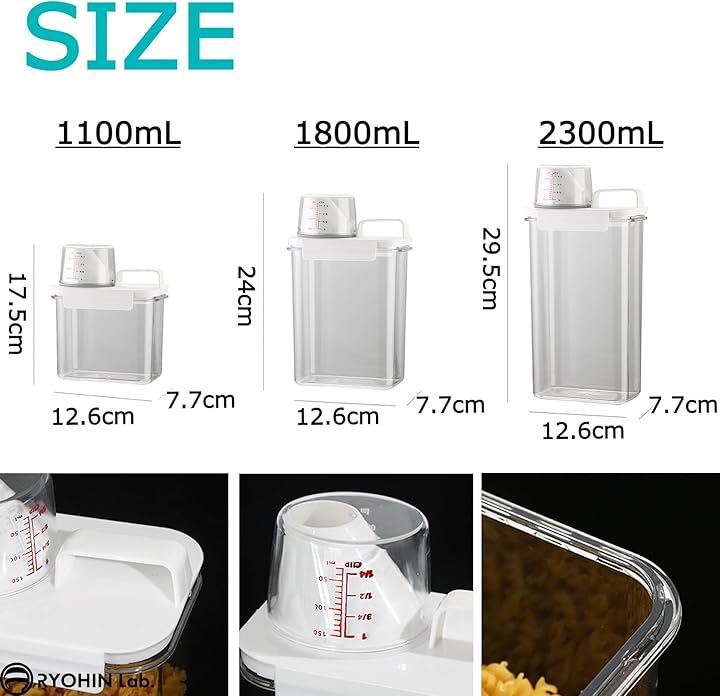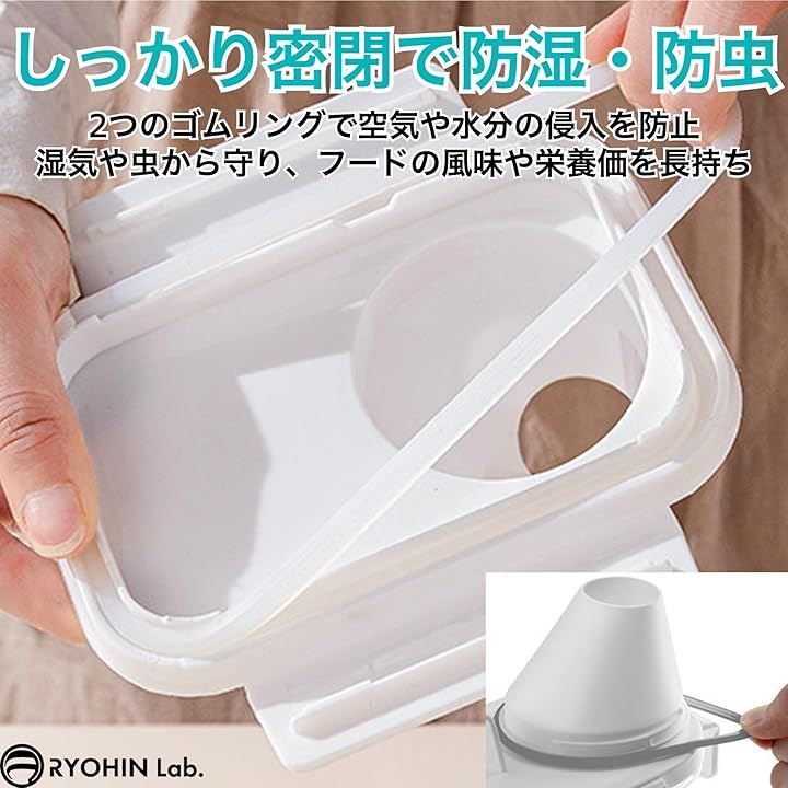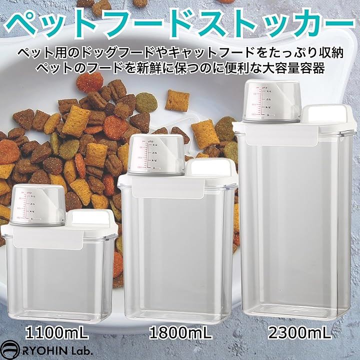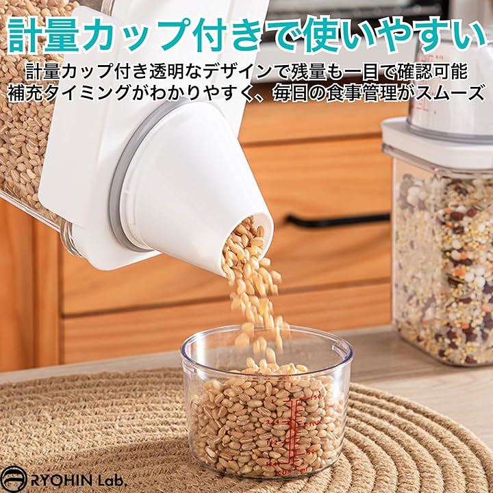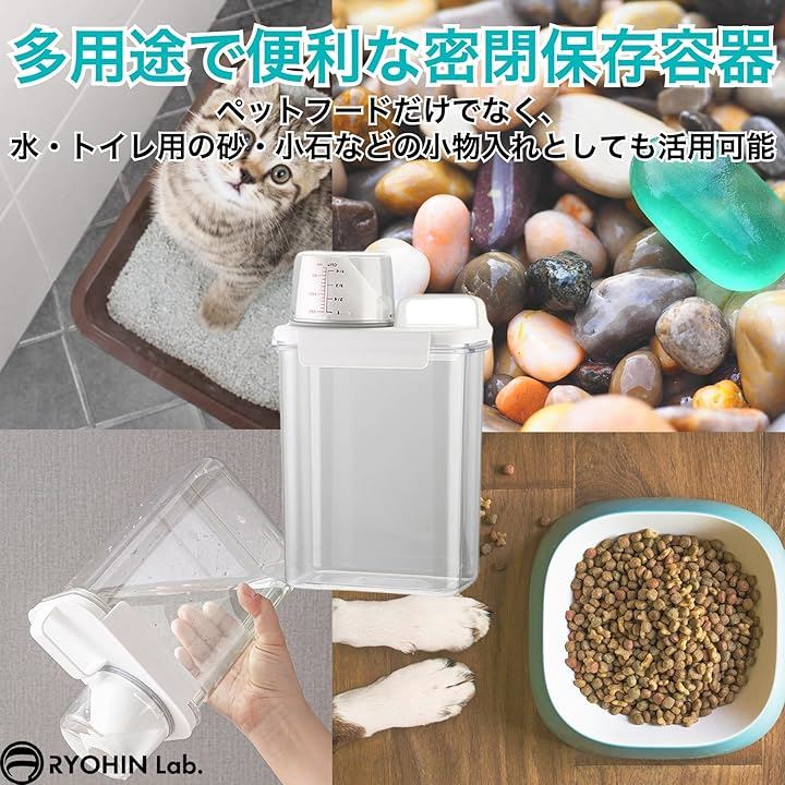 良品ラボ ペットフードストッカー 大容量 密閉 軽量 スリム 保存容器 猫用 犬用 ディスペンサー 取っ手 計量カップ付 1個