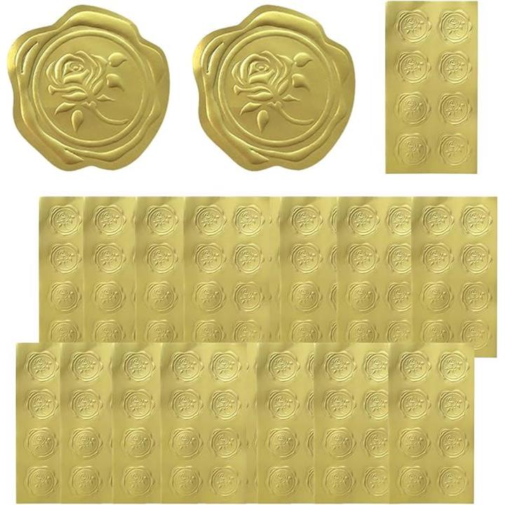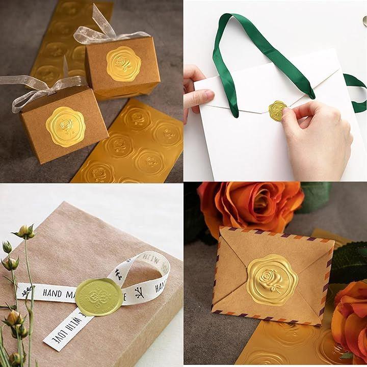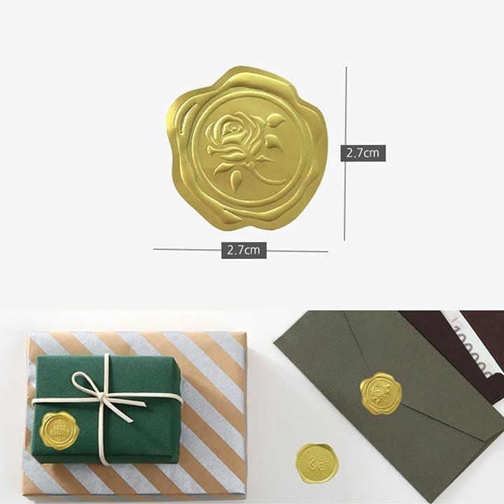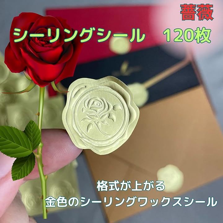 シール シーリング ワックス 120枚 大容量 1シートにつき8枚 15シート セット スタンプ 風 ろう 封蝋 ぷっくり 金色 ゴールド ローズ 薔薇 ばら