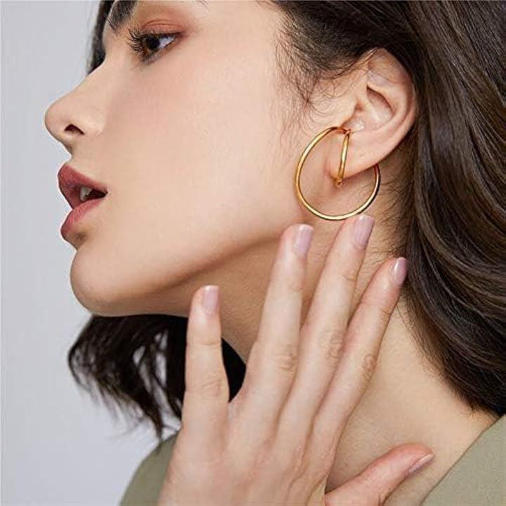 イヤリング レディース 人気 イヤカフ ノンホール ピアスみたいな フープ 痛くない かわいい 大きめ イヤーカフ