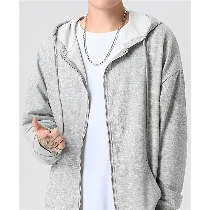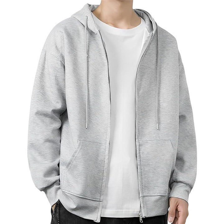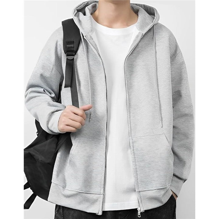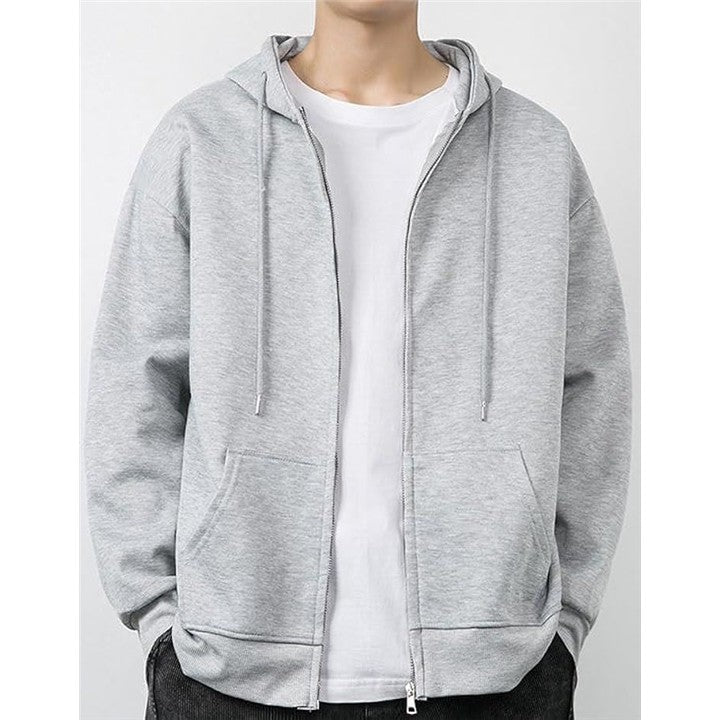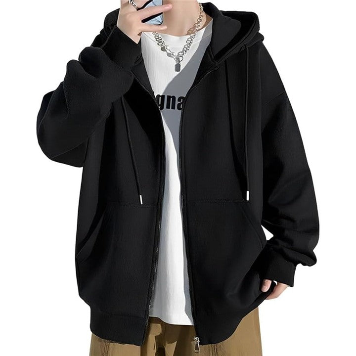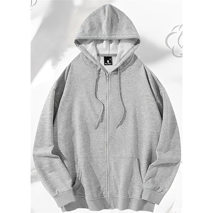 *ルームウェアーとしても着用できる無地のフード付きスエットジップアップトレーナー。