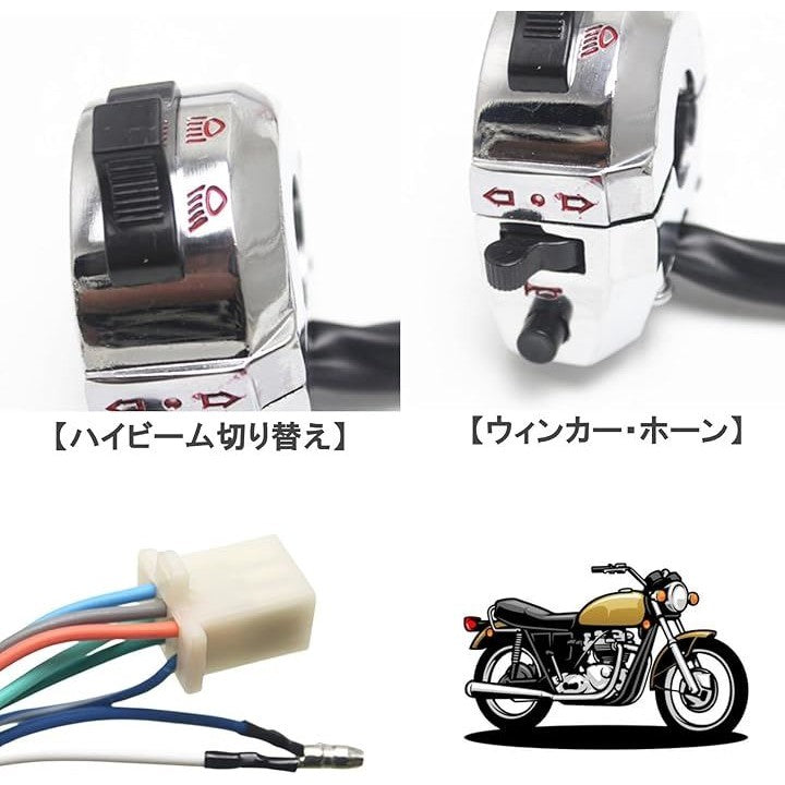 バイクハンドルスイッチ 汎用ハンドルスイッチ ウィンカー ホーン ロービーム ハイビーム 切り替え 22Φ