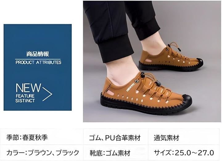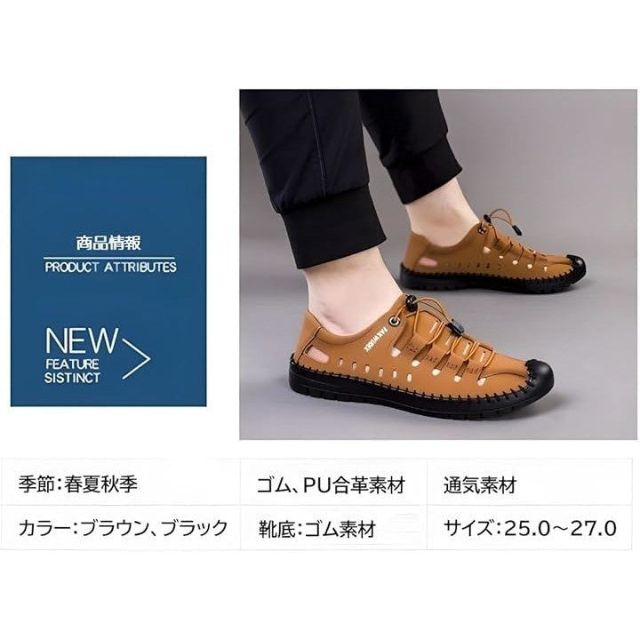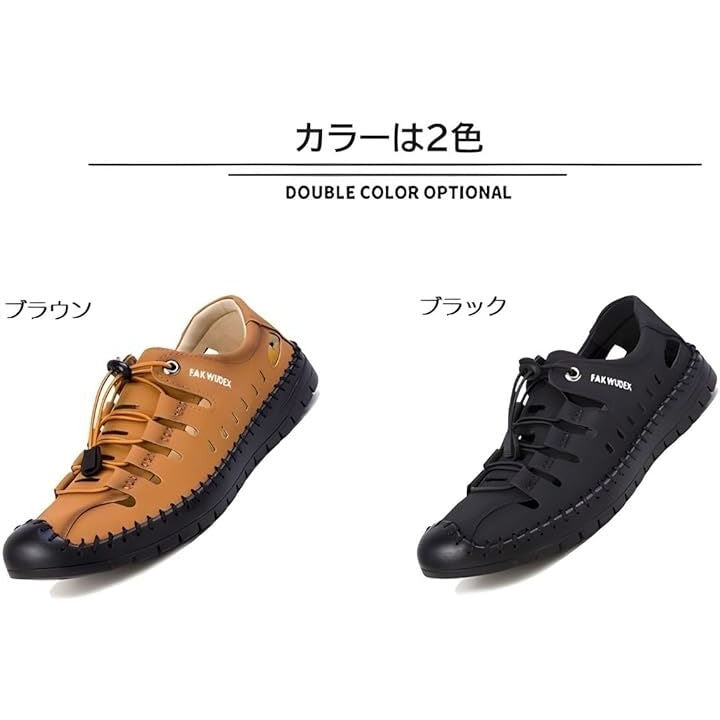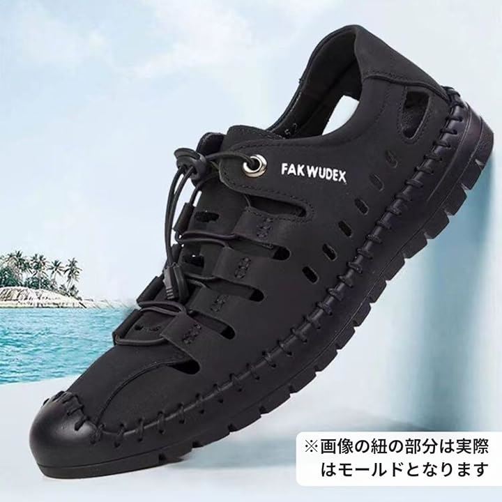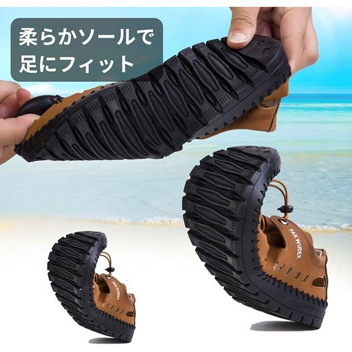 スポーツ サンダル メンズ 結ばない 靴ひも PUレザー 水遊び ゴム留め 通気性 軽量 履きやすい アウトドア