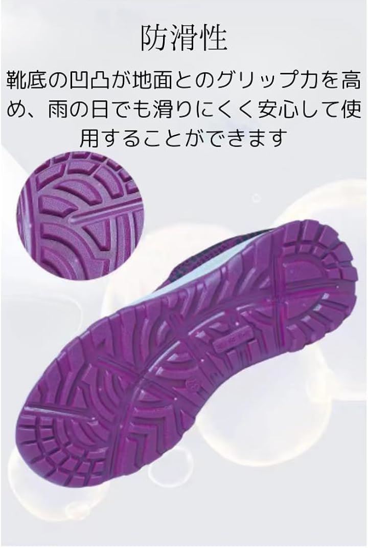 「滑りにくい靴底」 靴底は特殊形状の深い溝が刻まれているので、滑りにくく歩きやすい。