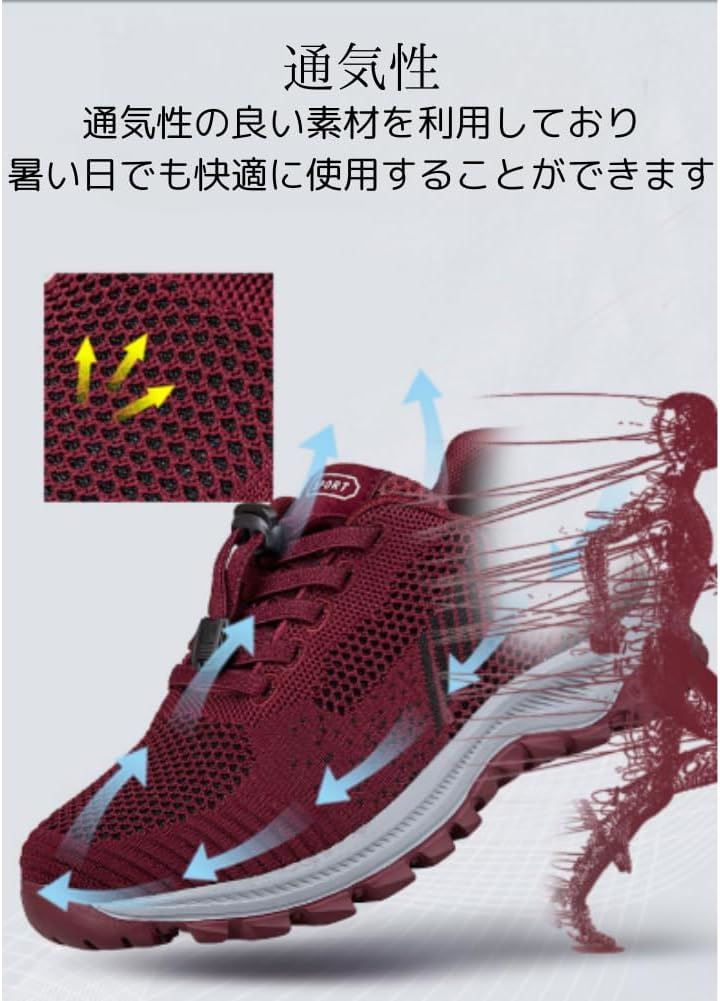 レディース ランニング スニーカー ウォーキング シューズ スポーツ フィットネスシューズ 運動靴 蒸れにくい 素早く履ける 滑り止め |