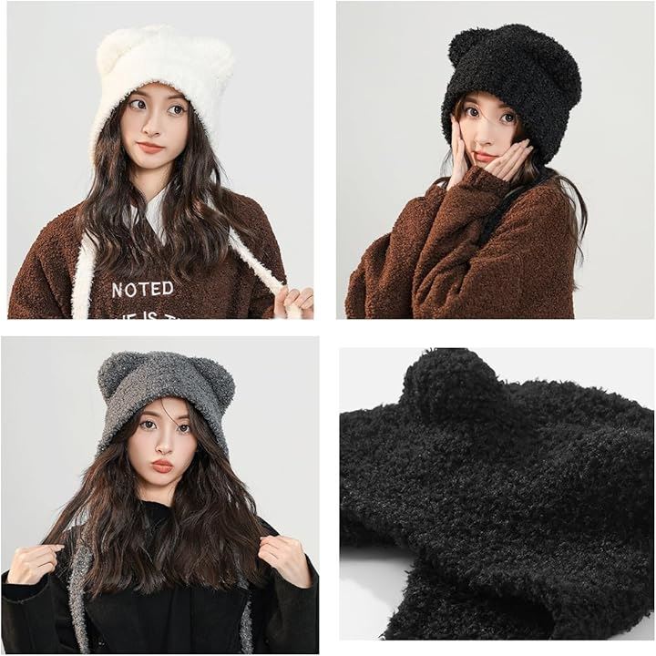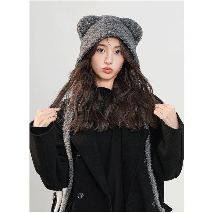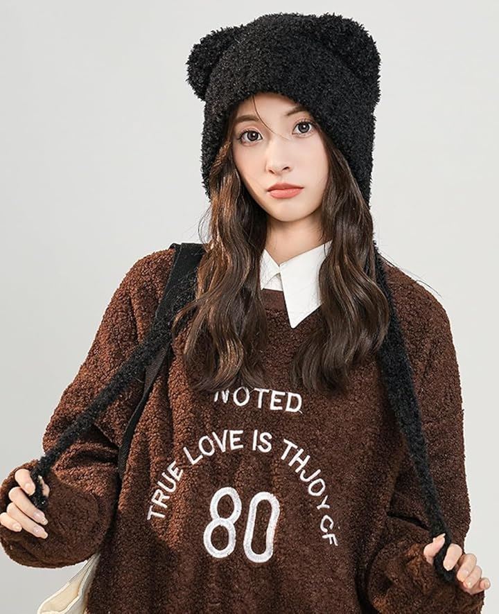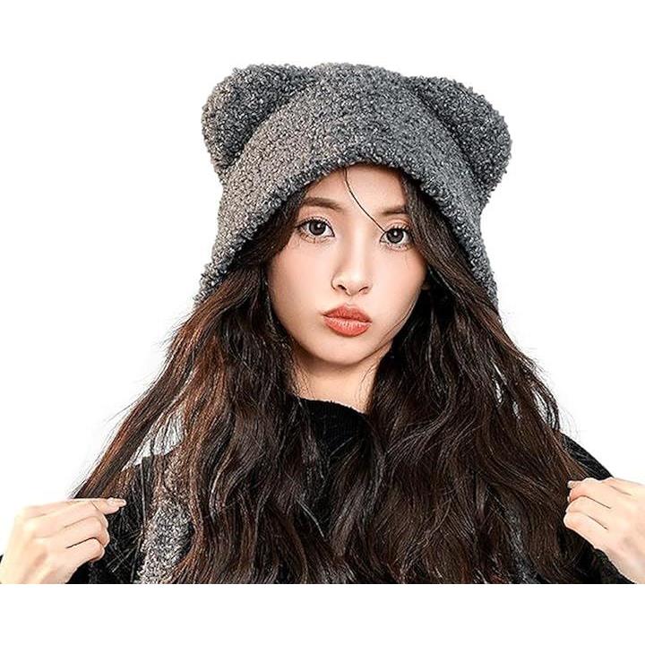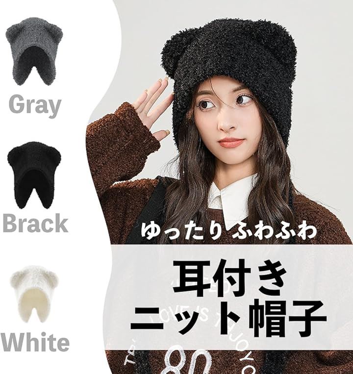 ニット帽子 耳付き ゆったり ふわふわ レディース ニットキャップ コスチューム レディースニット帽子 かっこいい かわいい おしゃれ