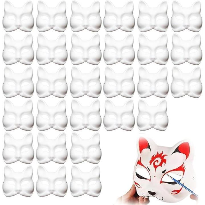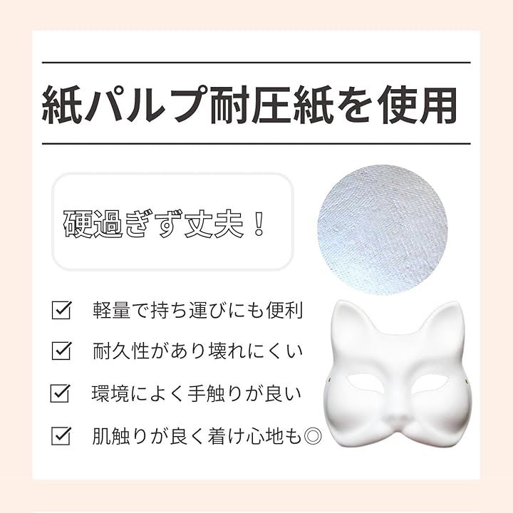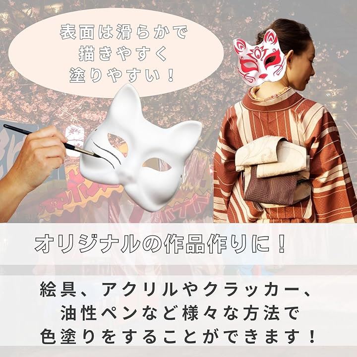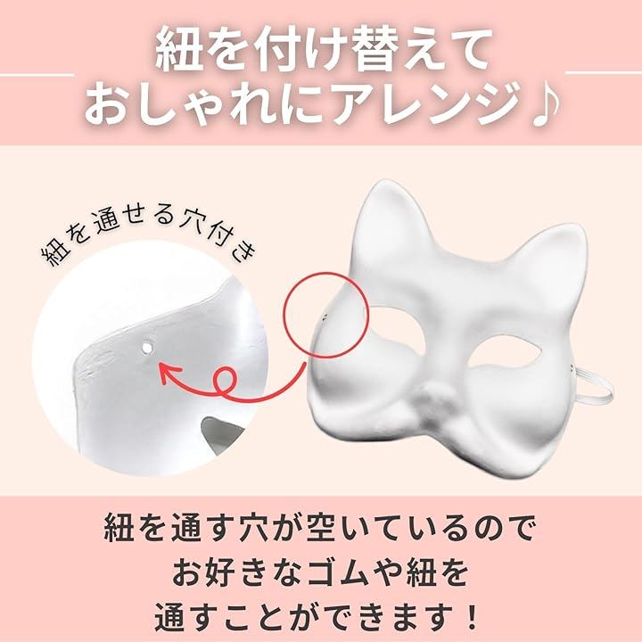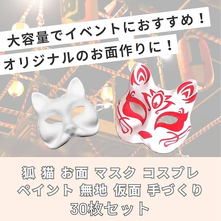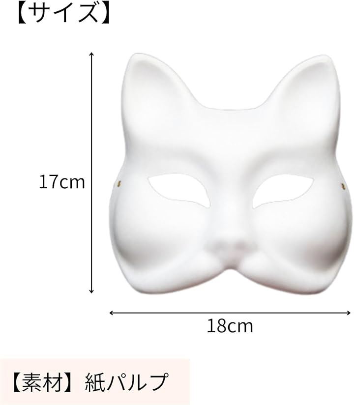 キツネのお面 半面 ゴムひも付き 白 無地 紙パルプ製 DIY ペイント 舞台 夏祭り ハロウィン コスプレ