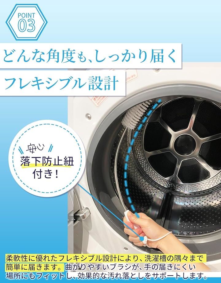 洗濯機に限らず、手の届かない細かな場所で使えるのがとても便利です。