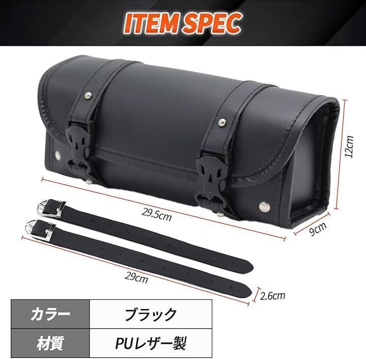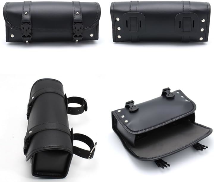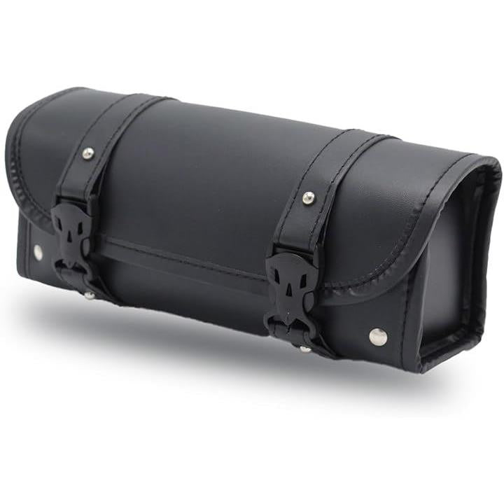 互換品 フロントバッグ バイク用 スクエア型 ツーリング 小物入れ 工具入れ ツール ポーチ サイド 背面 鞄 カバン 防水 PUレザー 汎用 黒