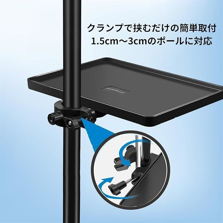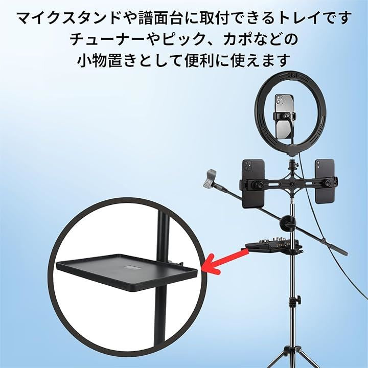 マイクスタンドトレイ クランプオン 譜面台 小物置き トレー 楽譜 スマートフォン チューナー ピック