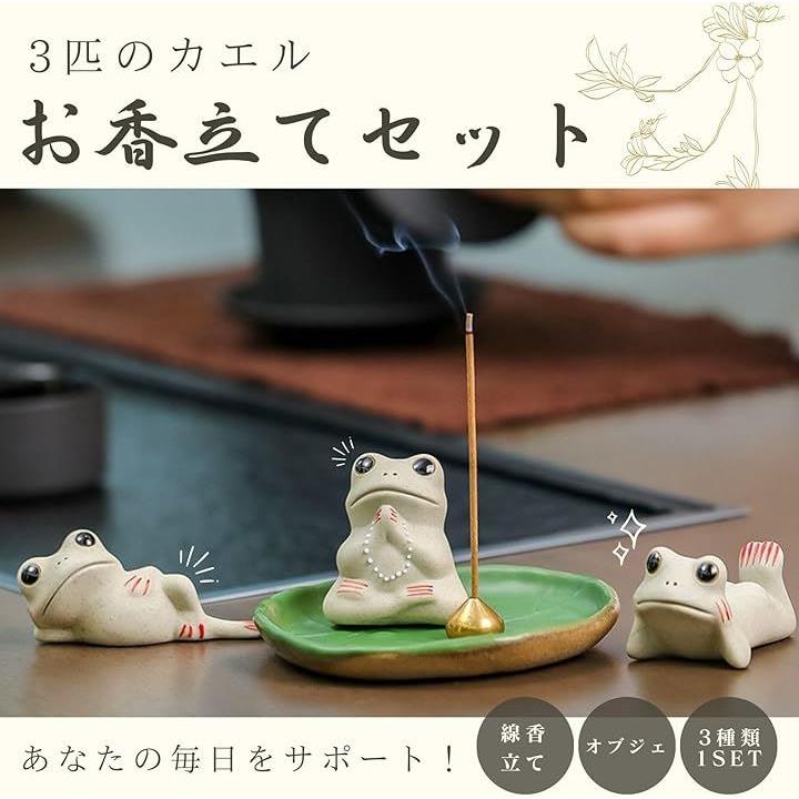 お香立て カエル 線香立て 蛙 蓮の葉 陶器 香炉 ヨガ インテリア オブジェ リラックス 癒し