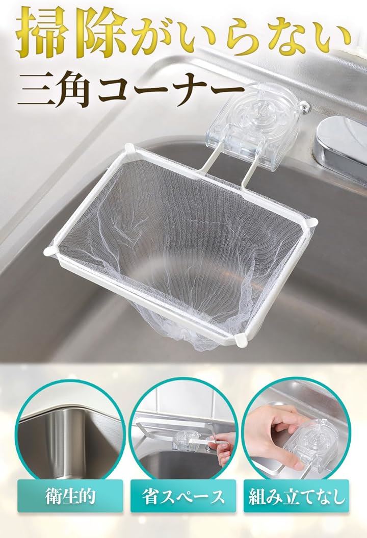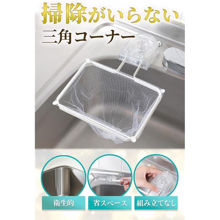 三角コーナー いらず 省スペース・貼り直し可能水切りネット 流し台 排水溝 ゴミ受け ゴミ入れ