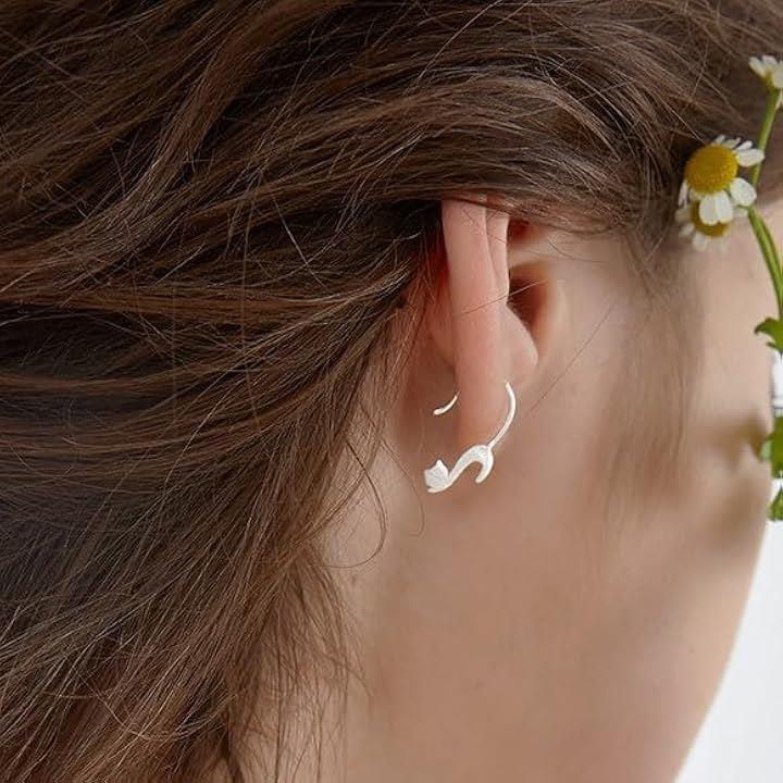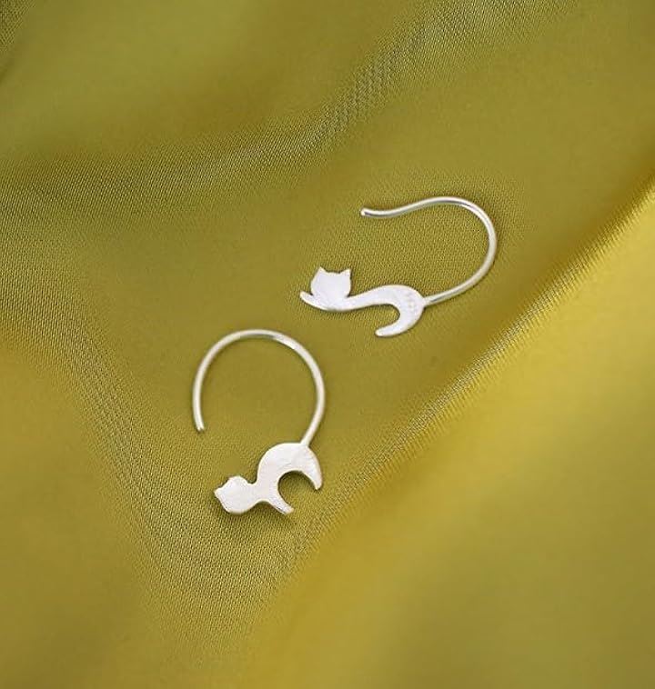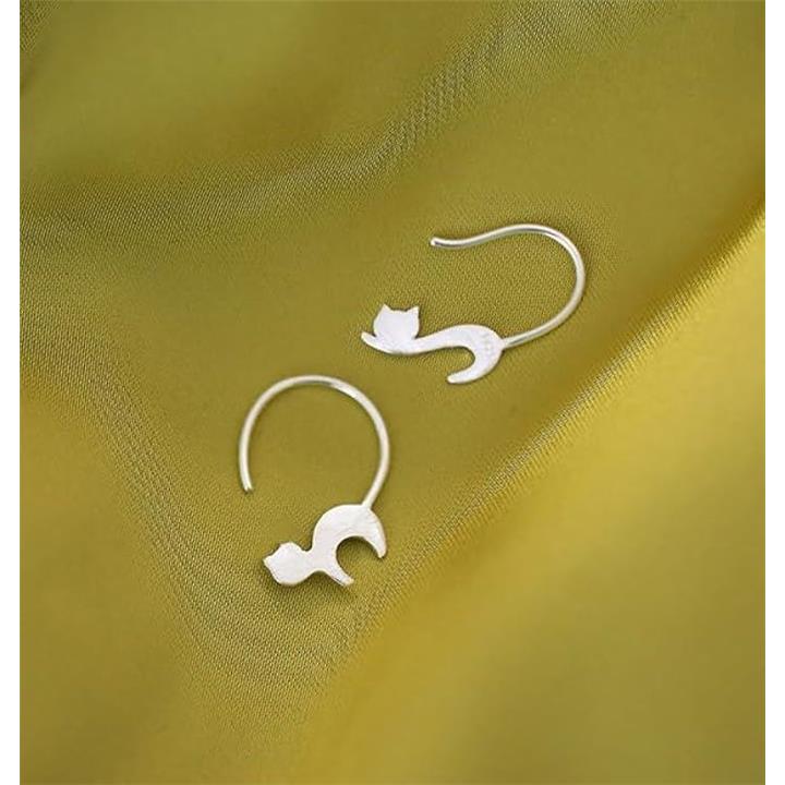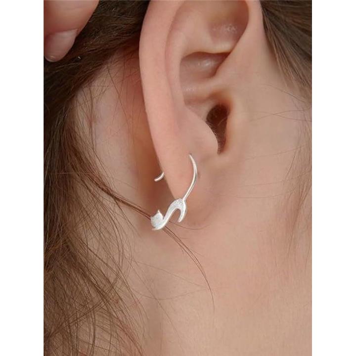 ピアス 猫 両耳 レディース アクセサリー イヤークリップとしても使える シンプル ペット ネコ お洒落 シルバーカラー