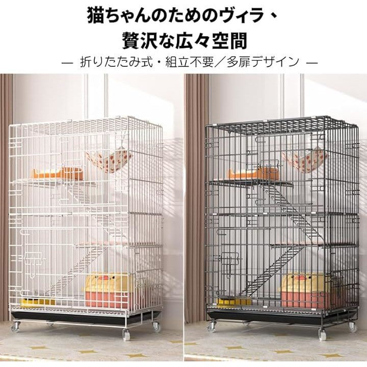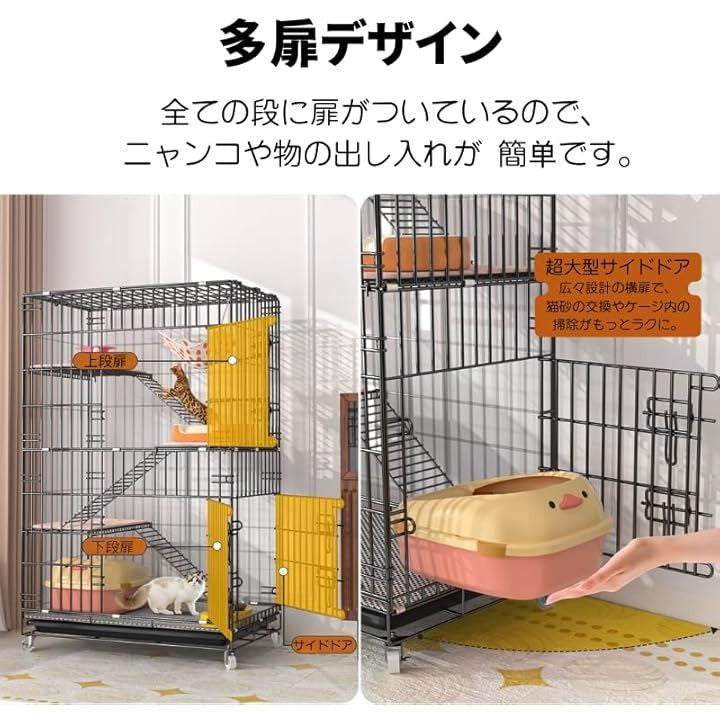 猫 ケージ キャットケージ 3段 60x42x100 折り畳み式 自由組み合わせ トレー付き 猫ドア付き 大型 猫ゲージ キャットハウス ネコ 多段 留守番 保護 脱走防止