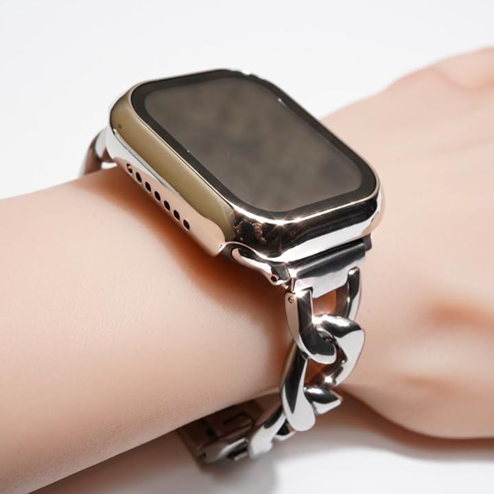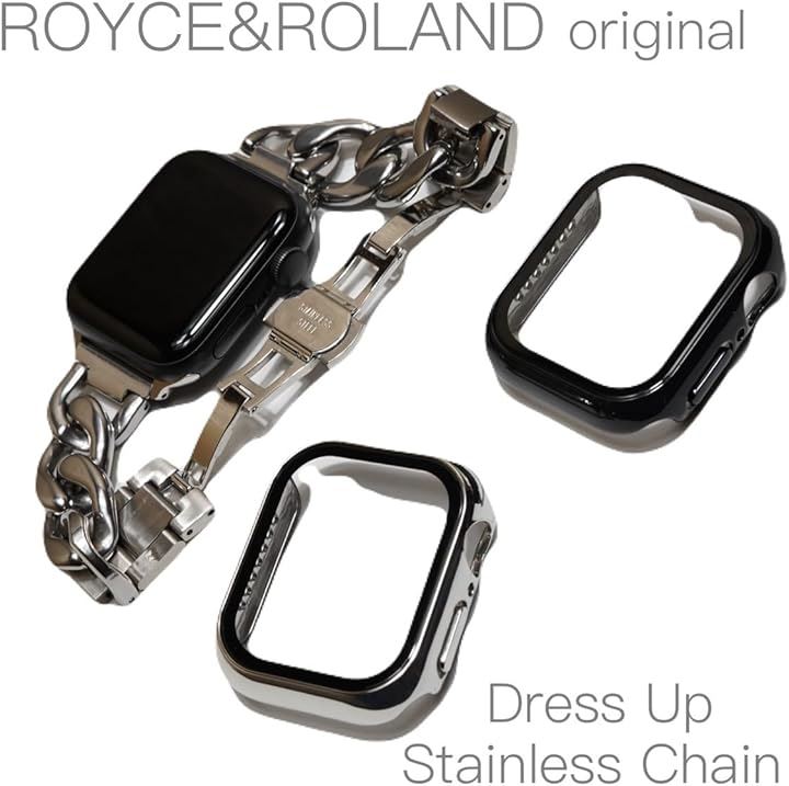 「チェーンバンドにオススメ」ROYCE&ROLANDアップルウォッチのステンレスチェーンベルトに対応した3Dラウンドデザインのステンレス調カバー。