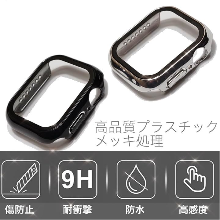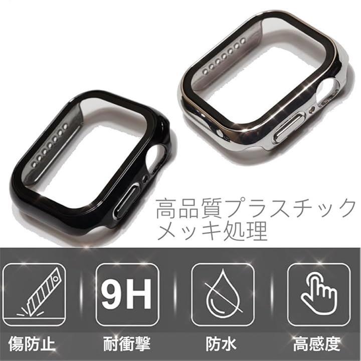 Royce&Roland Apple Watch 用 カバー ケース シルバー/ブラック 2個セット 保護 防水 ガラスフィルム PC素材 メタル調 光沢 頑丈 軽量 耐衝撃 (44mm) |
