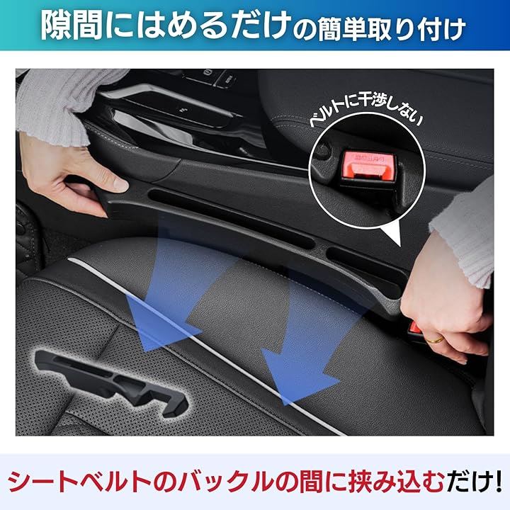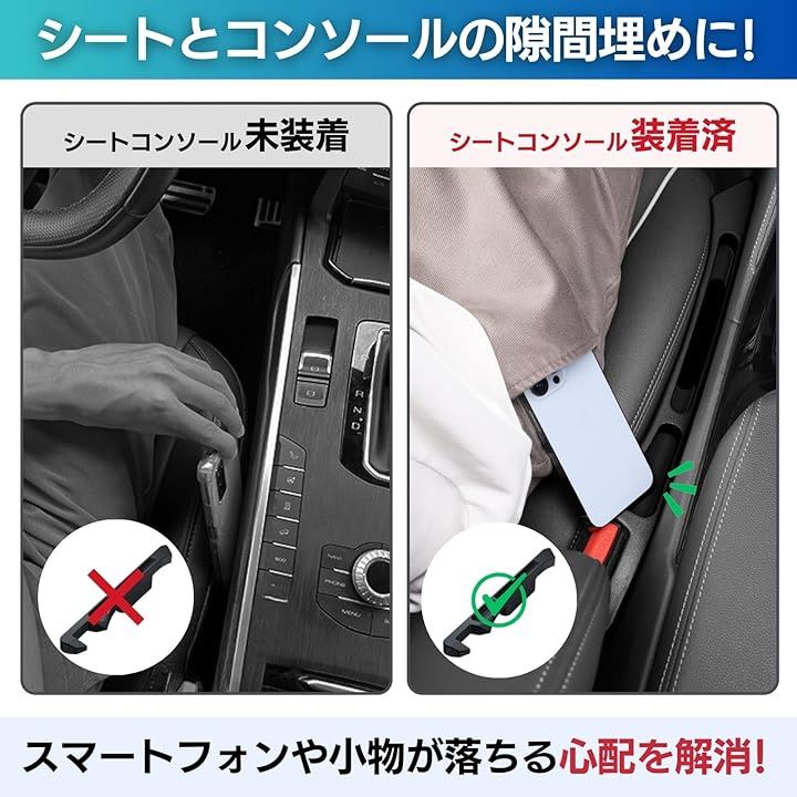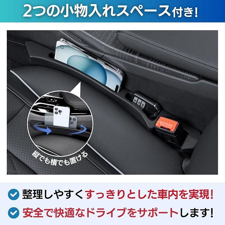 車用 隙間埋め クッション 小物入れ 付き コンソール シート サイド 落下防止 便利 グッズ 収納 スペース 2枚入り