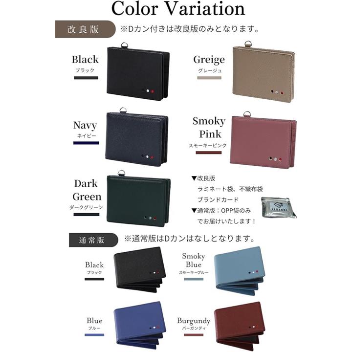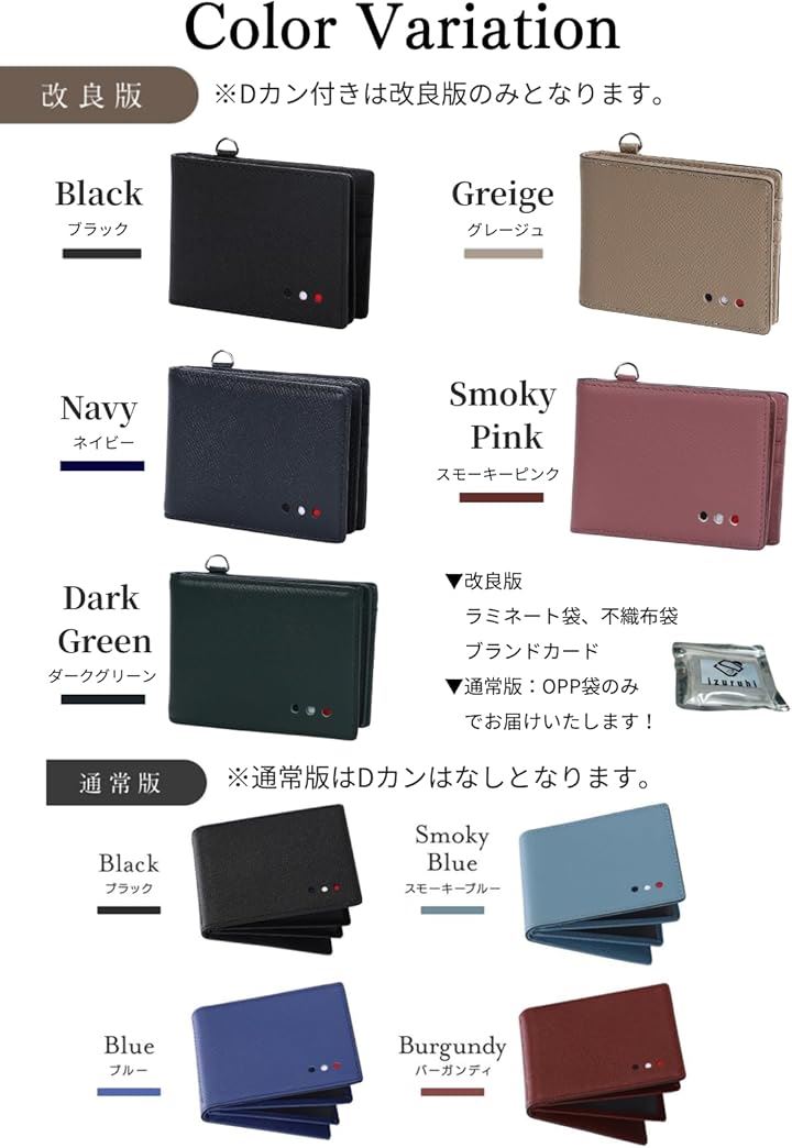 「カラー」通常版:ブラック、スモーキーブルー、ブルー、バーガンディ / 改良版:ブラック、グレージュ、ネイビー「サイズ」横10.7cmx縦7.9cmx厚さ1.7cm。
