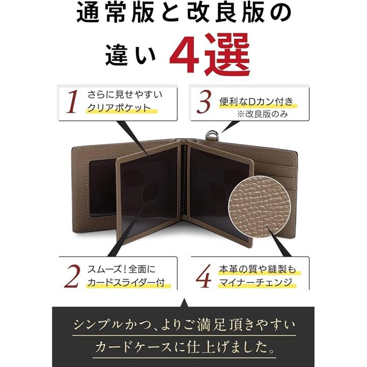 1.8cmの薄型ながら、5面のクリアポケットを使うことで免許証や社員証など見せるカードを複数管理することも可能です。
