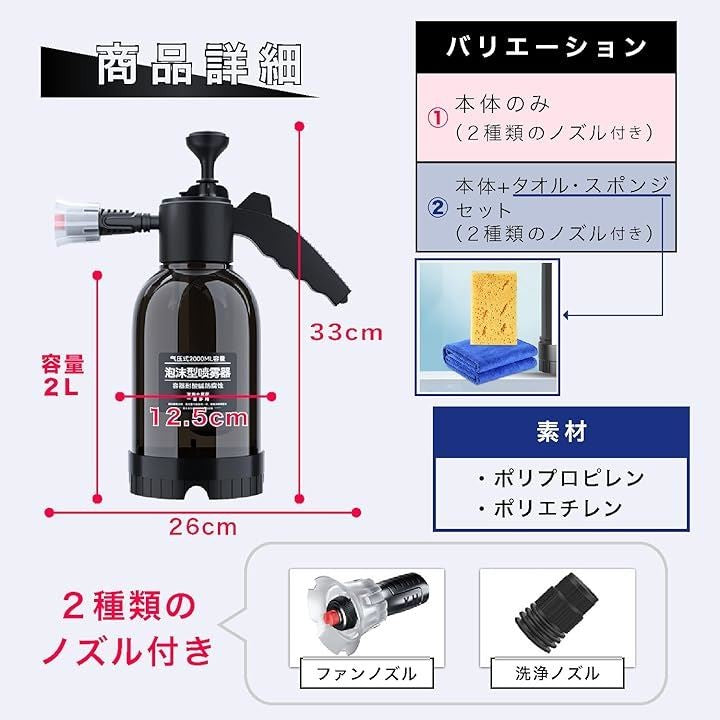 フォームガン 洗車 手動 噴霧器 泡 ノズル 蓄圧式 泡洗車 加圧 霧吹き バイク シャンプー 発泡 掃除