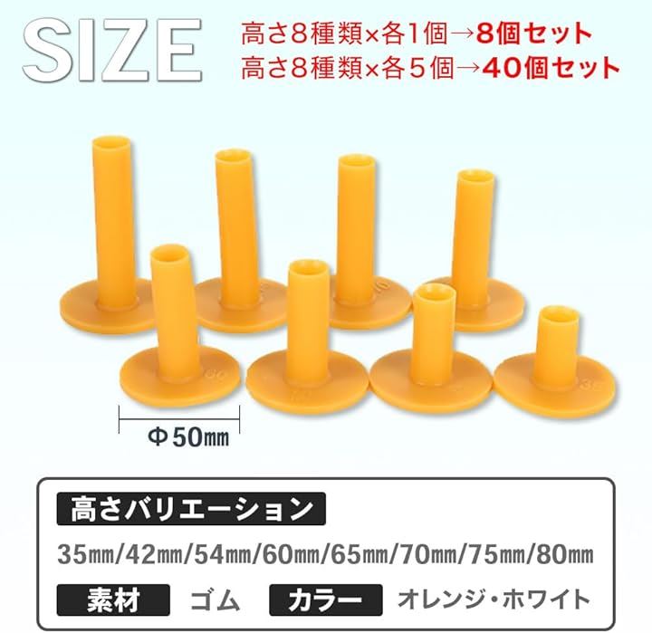 AllBright ゴルフティー ゴルフ用ティー ゴム ラバー製 練習用 ショート ロング 40個セット