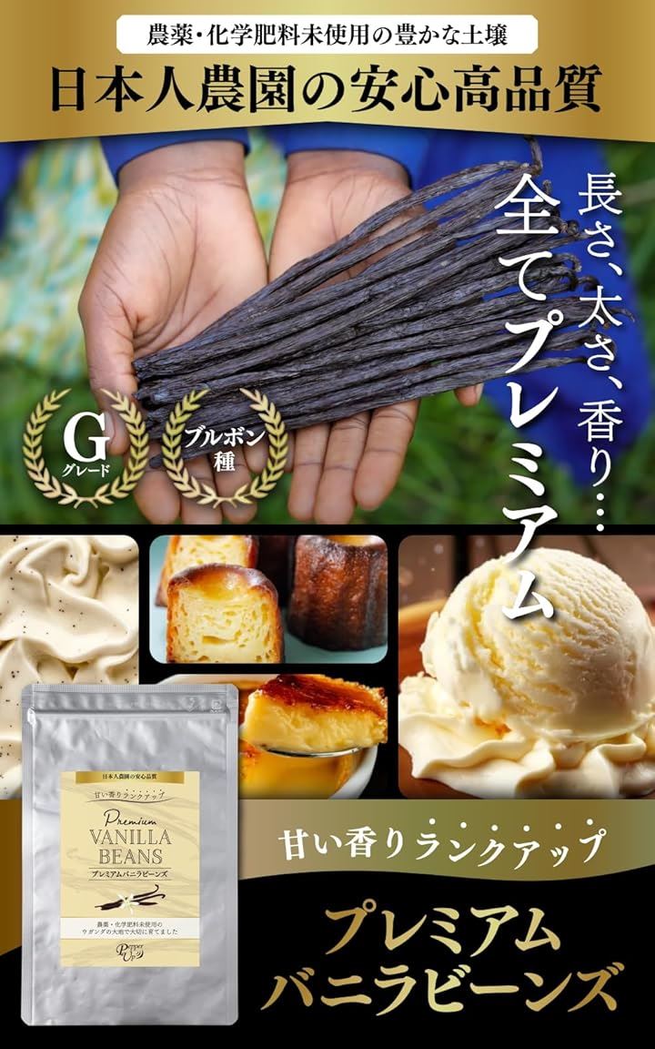 バニラビーンズ 8本 日本人農園の高品質 無農薬 無化学肥料 ウガンダ産 vanillaお菓子作り 製菓用
