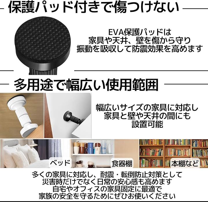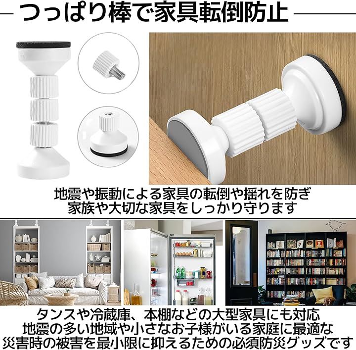転倒防止 つっぱり棒 短い 地震 防災 タンス 食器棚 冷蔵庫 異音 揺れ防止 4.2 ~ 11cm 2本セット 両面テープ付き