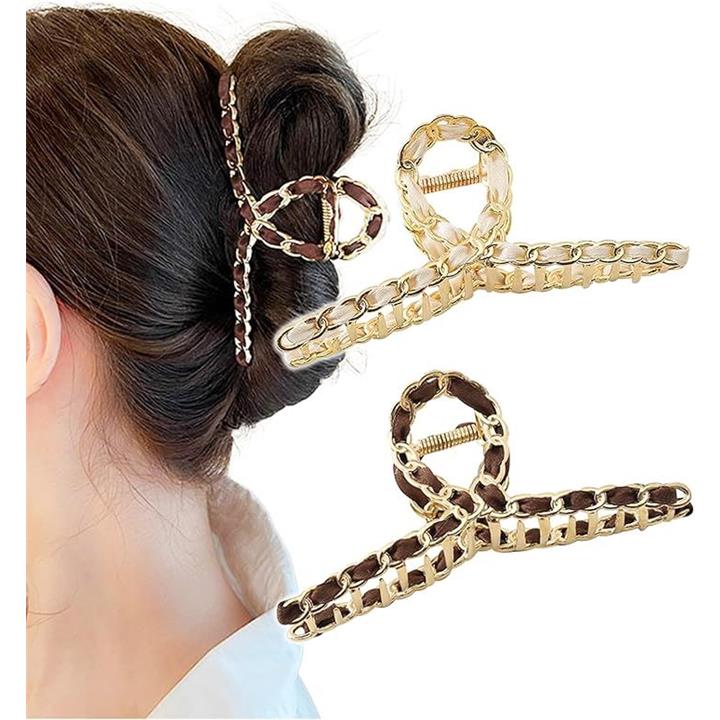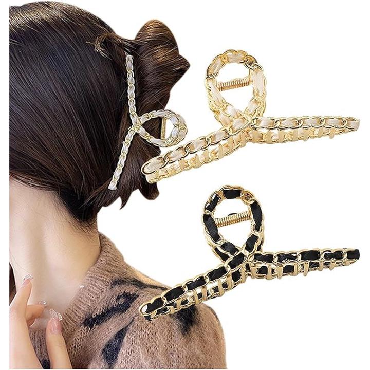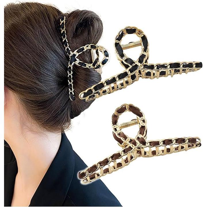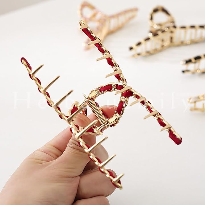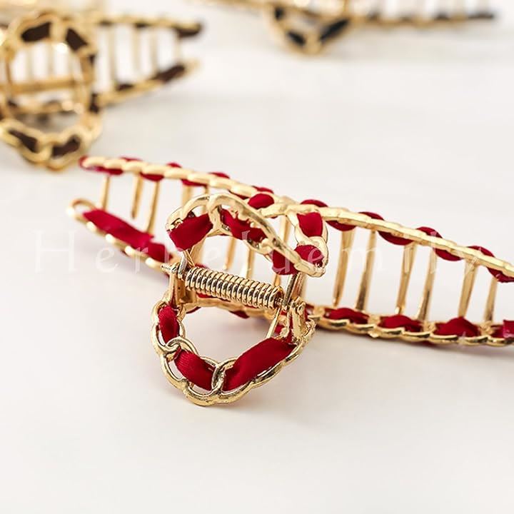 ヘアクリップ ヘアクロー ダッカール バンスクリップ 髪留め ゴールド リボン 2個セット