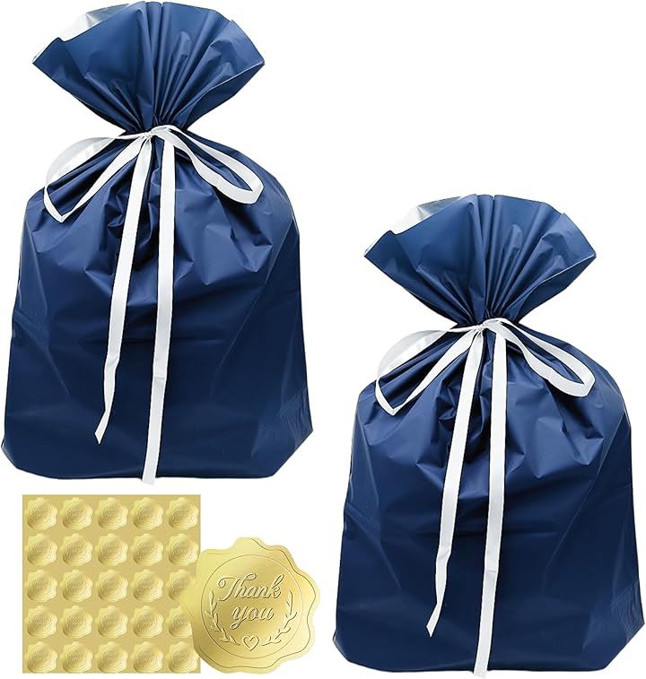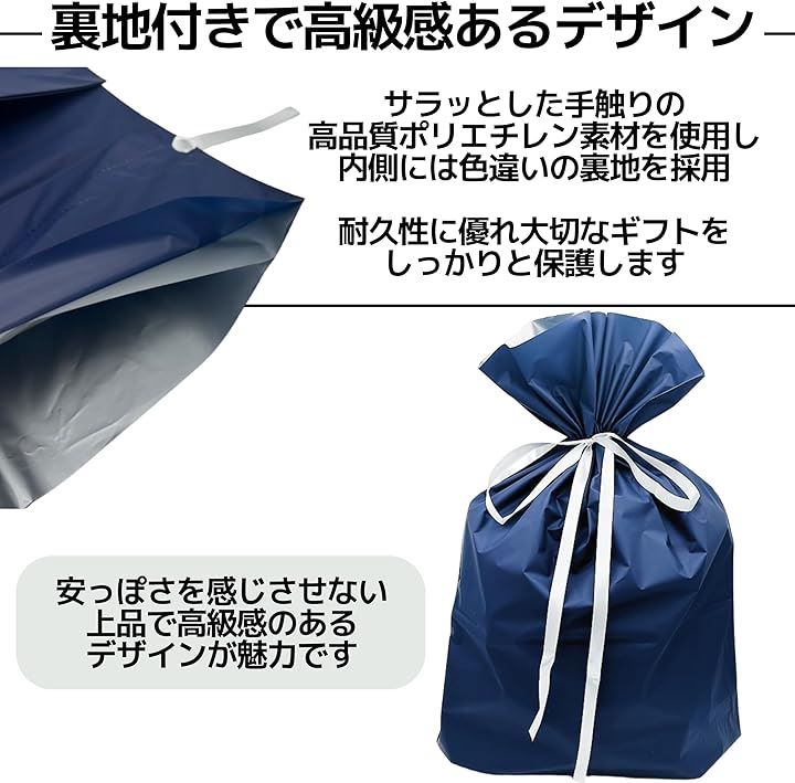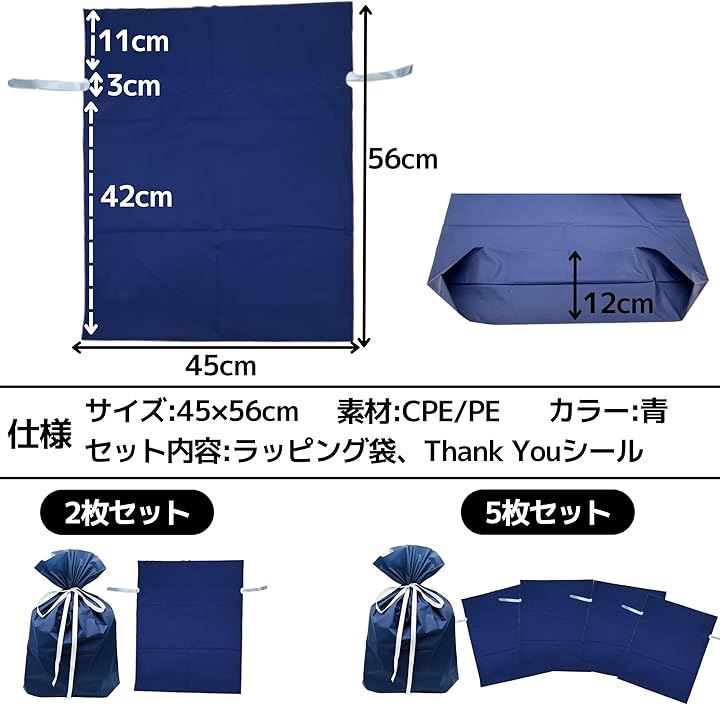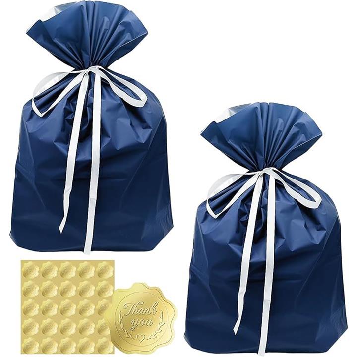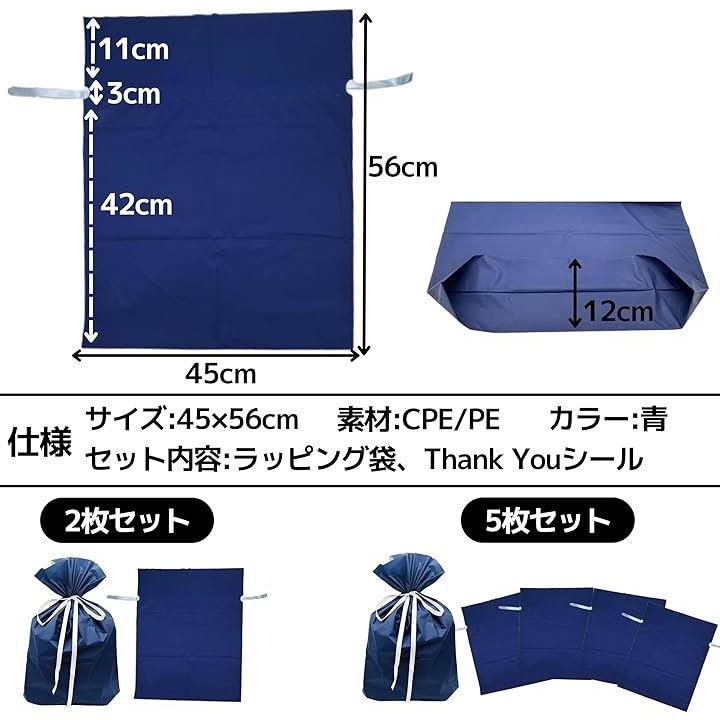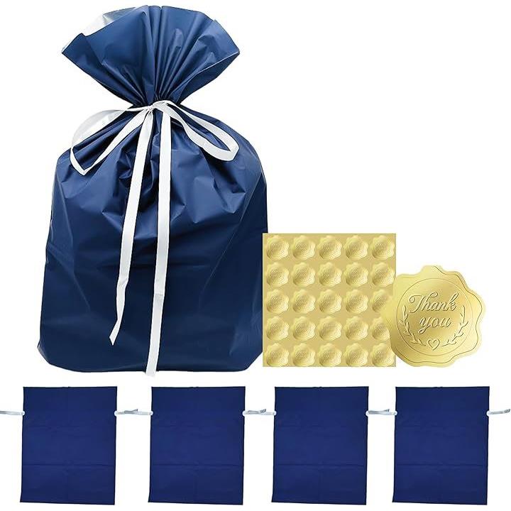 互換品 ラッピング 袋 プレゼント 包装 ギフトバッグ 大 45x56cm 青 リボン シール付き