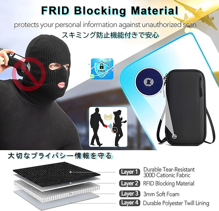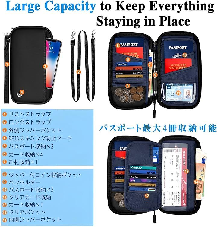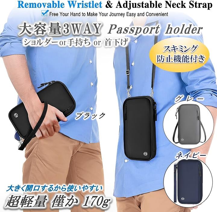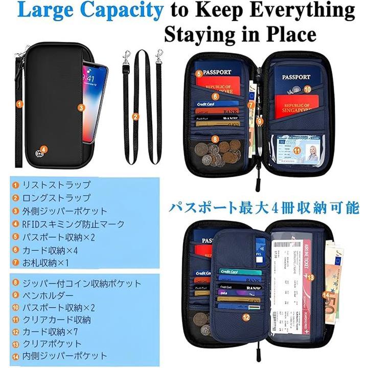 パスポートケース ポシェット 首下げ 大容量 スキミング防止 磁気防止 防水 通帳ケース 通帳入れ RFID