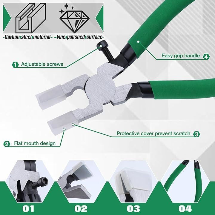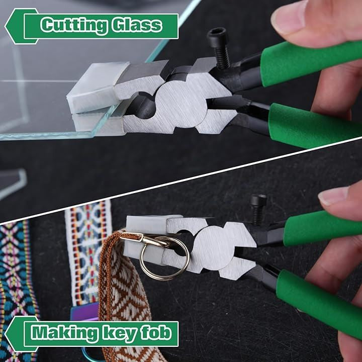ガラスプライヤー 紐留め 調整ネジ付 平ペンチ セット ガラスニッパー やっとこ ゴム付 ステンドグラスニッパー 道具 ガラスカット ガラスペンチ ワニ口 エンドパーツ 工具 ジャンプリング付き つなぎ ヒモ留め 平ヒモ用
