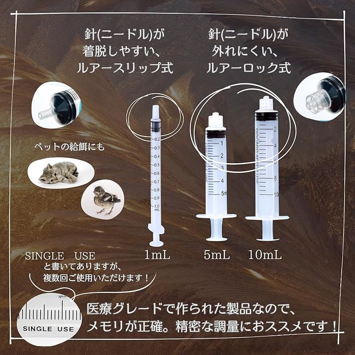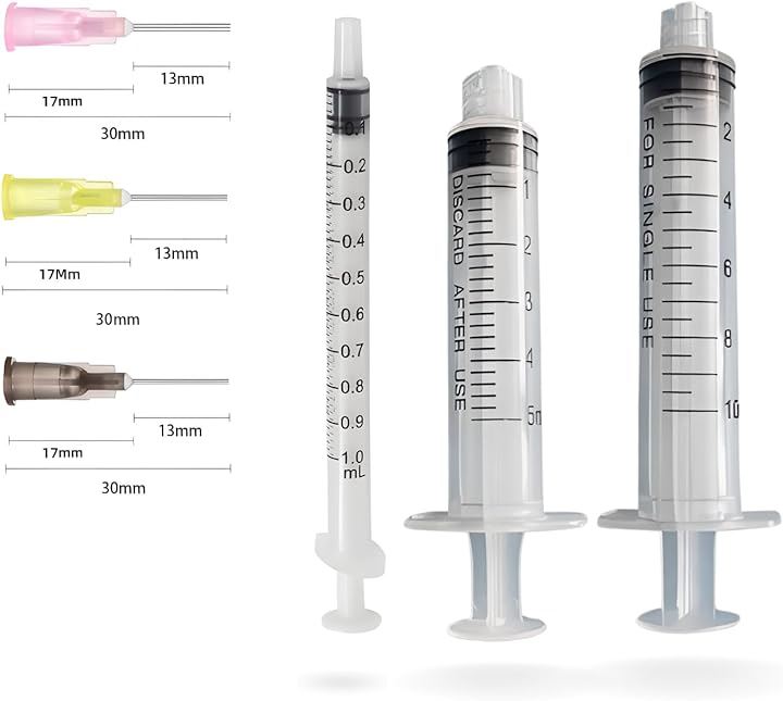 インク注入用注射器 シリンジ1mL、5mL、10mL&注射針 平カット18G、20G、22G 1.5cm