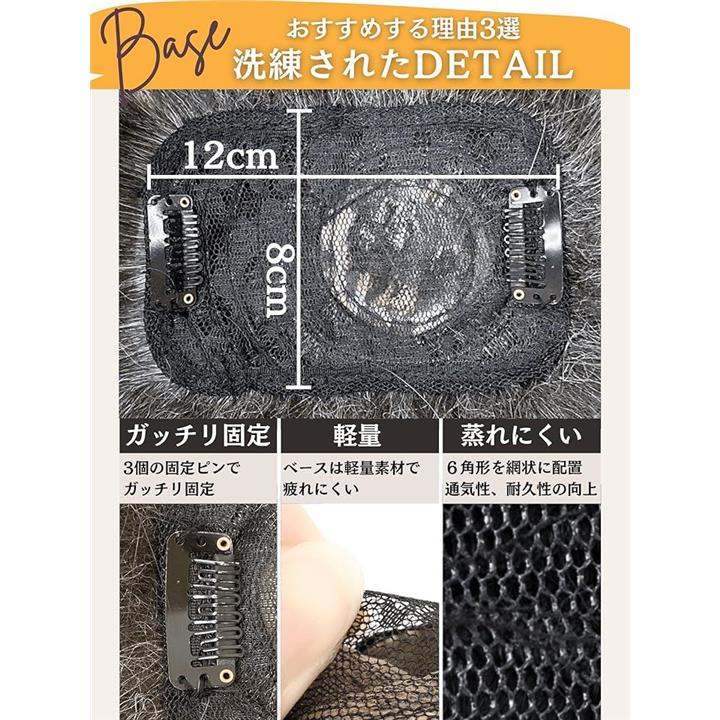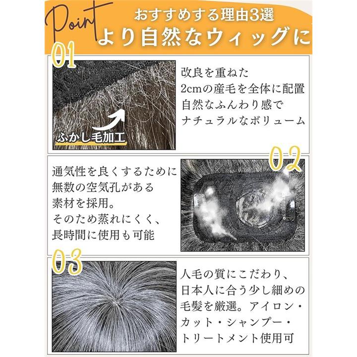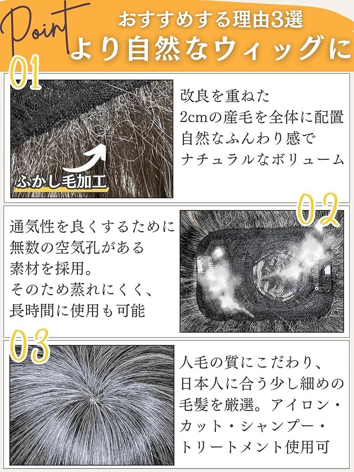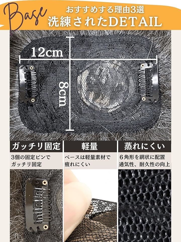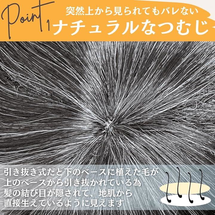 「3つの特徴」(6) 「特徴1」つむじや頭頂部周りの薄毛や生え際の白髪にお悩みの、ウィッグ、付け毛、カツラ初心者に最適の商品。