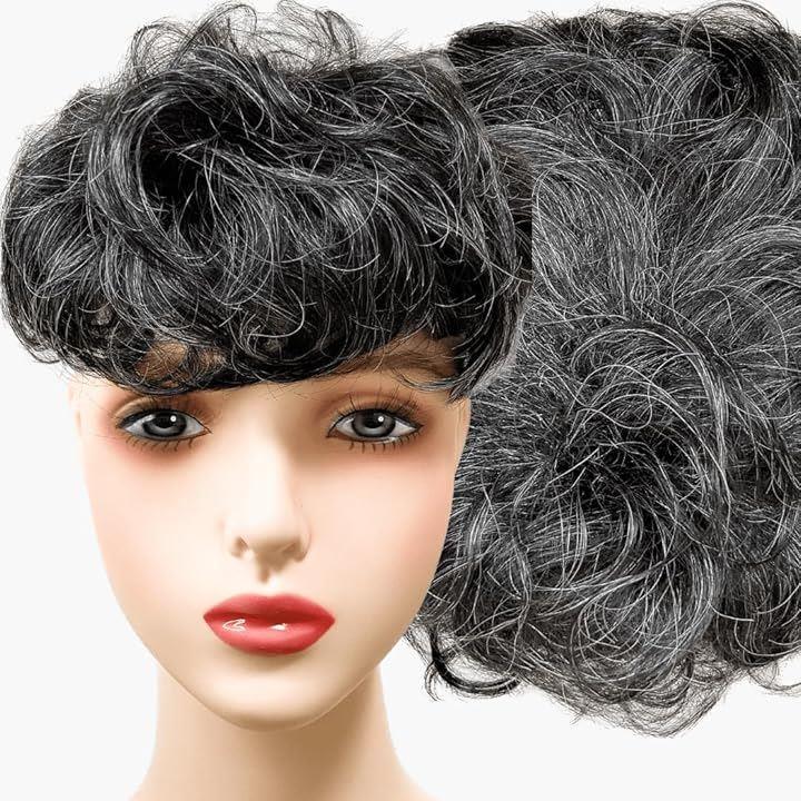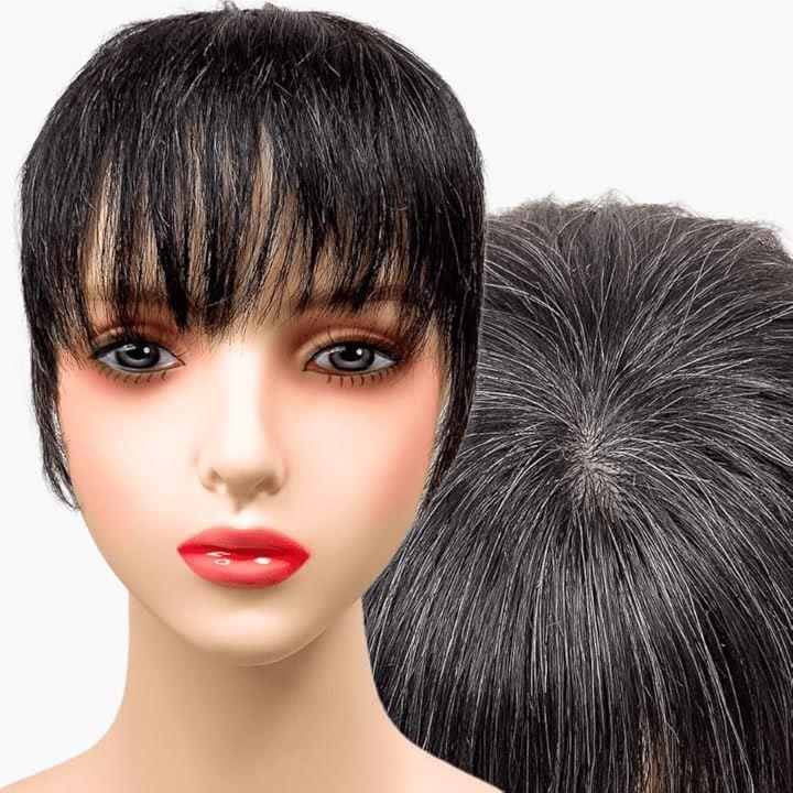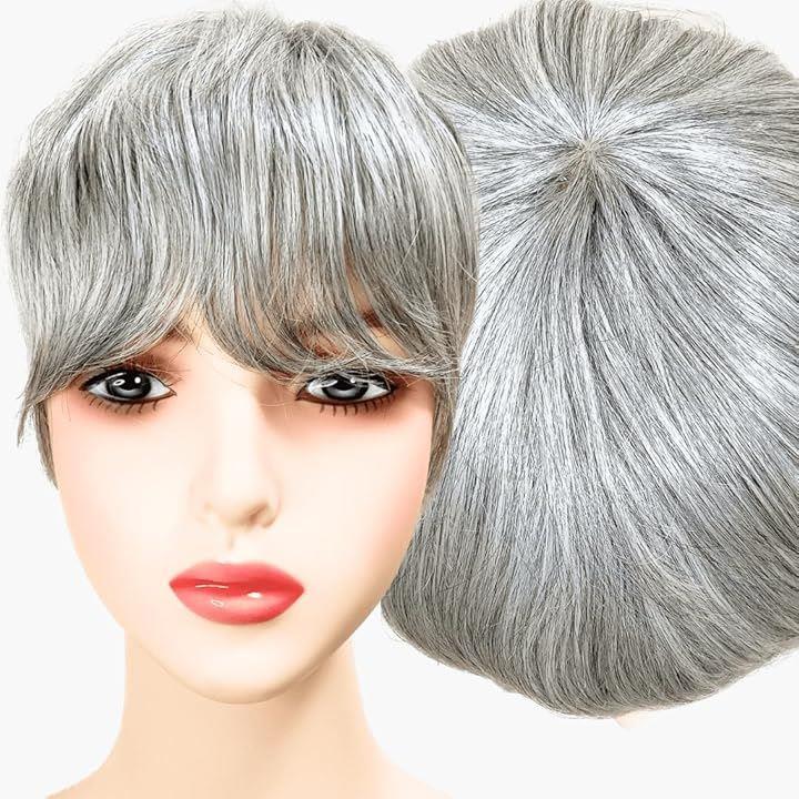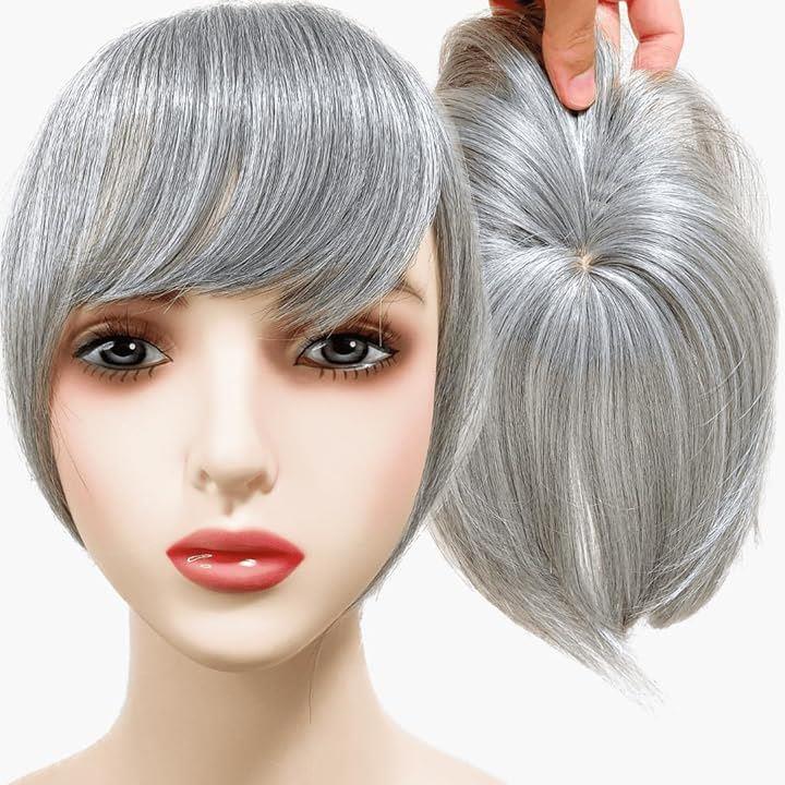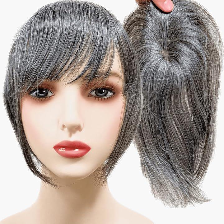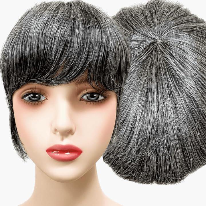 部分ウィッグ かつら ヘアピース ポイントウィッグ 白髪 グレイヘアー グレイ 女性 レディース 人工毛 ウィッグ ショート 前髪 ストレート 前髪ウィッグ O型つむじ トップピース グレーヘアー (白5黒5, グレイヘアーアップ) |