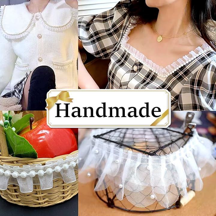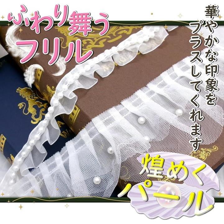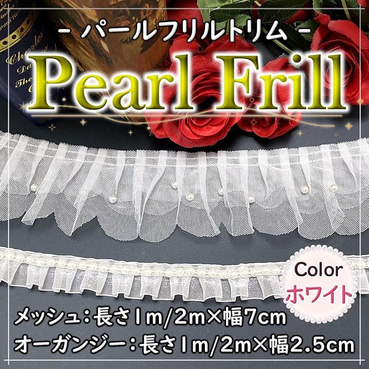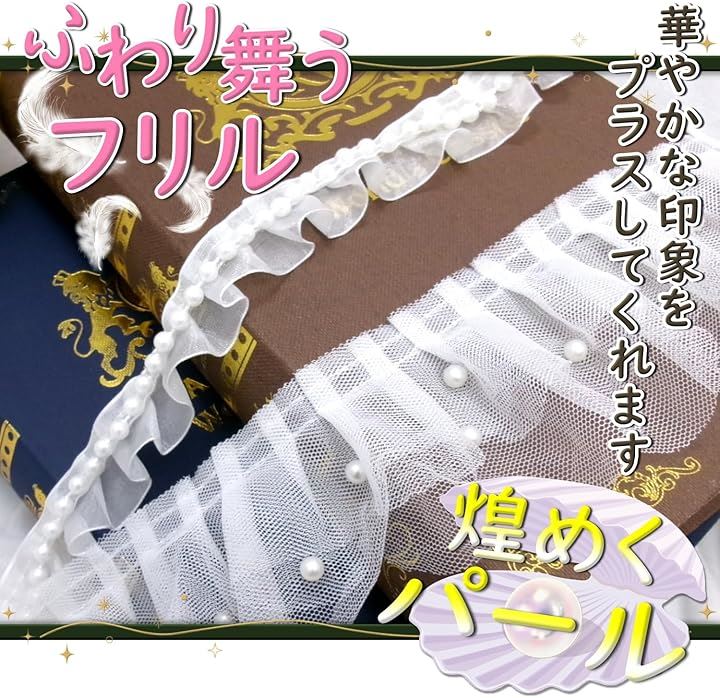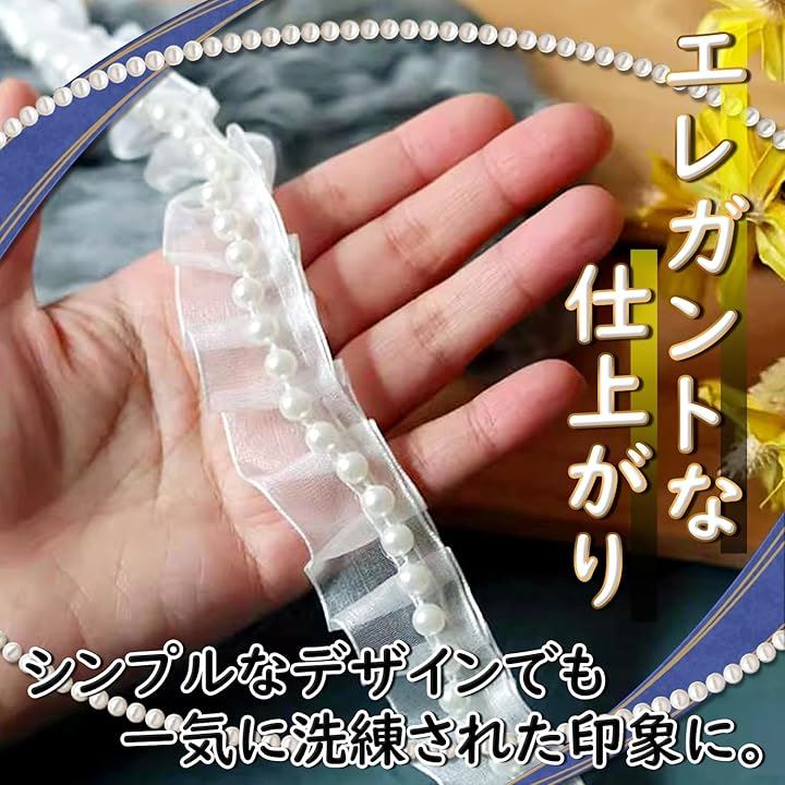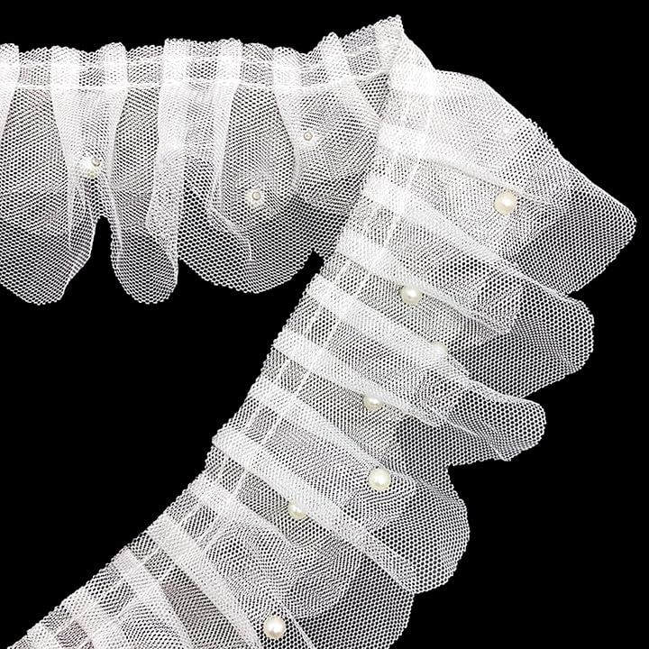 パール フリル トリム 生地 白 光沢 透ける 無地 装飾 縁取り