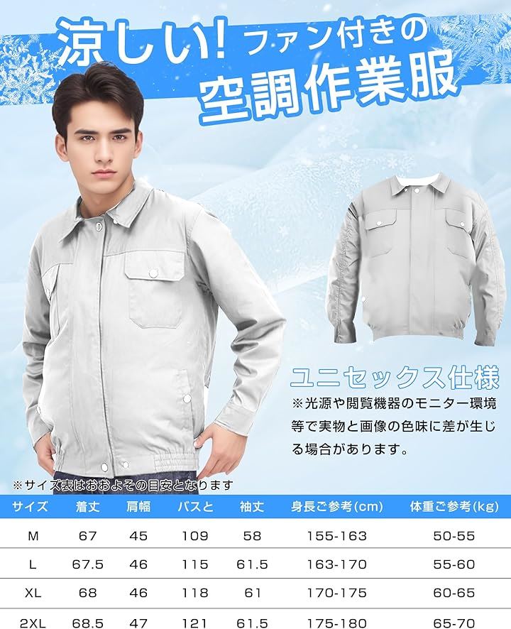 互換品 互換性 空調作業服 服のみ 長袖作業着 冷却ウェア 風機付なし
