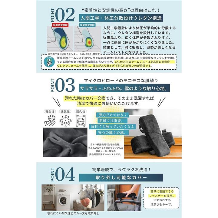 理学療法士監修calmoon 奇跡のアームレスト 箱付き ひじ置きクッション 肘置き 肘掛け 両肘セット 低反発 ひじかけ 椅子 ゲーミングチェア パソコンデスクチェア
