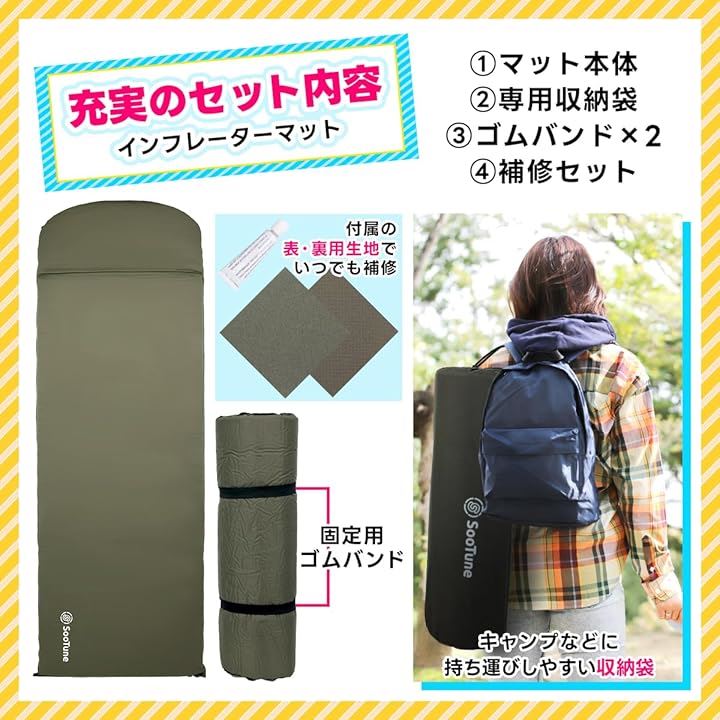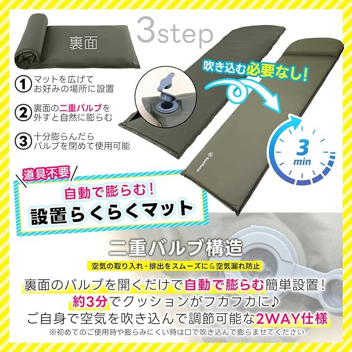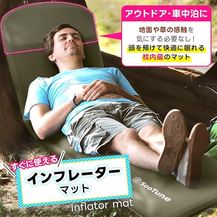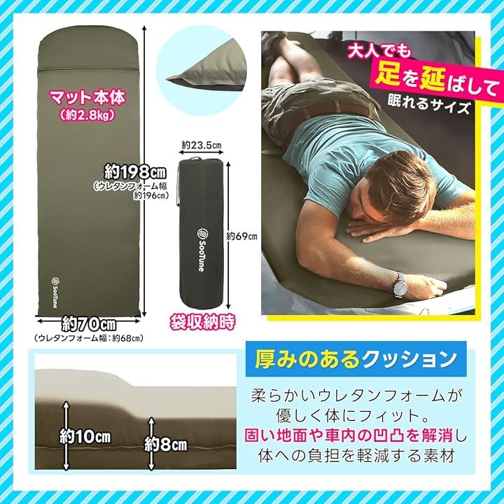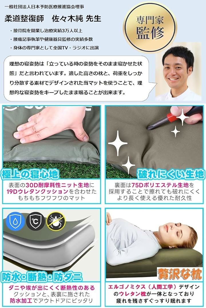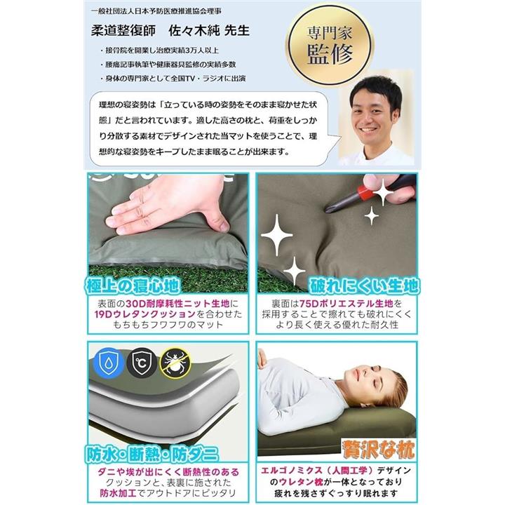 インフレーターマット 自動膨張式 理想の寝姿勢x監修 8cm 70cm R6.5 なめらか生地 枕付き 2wayバルブ
