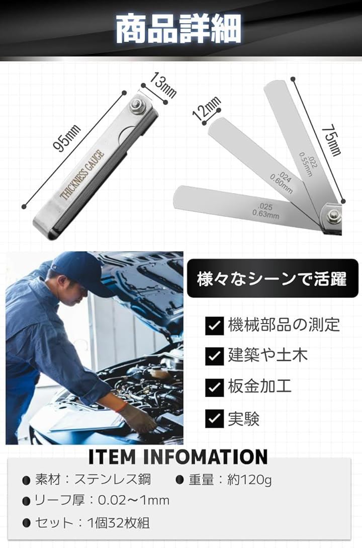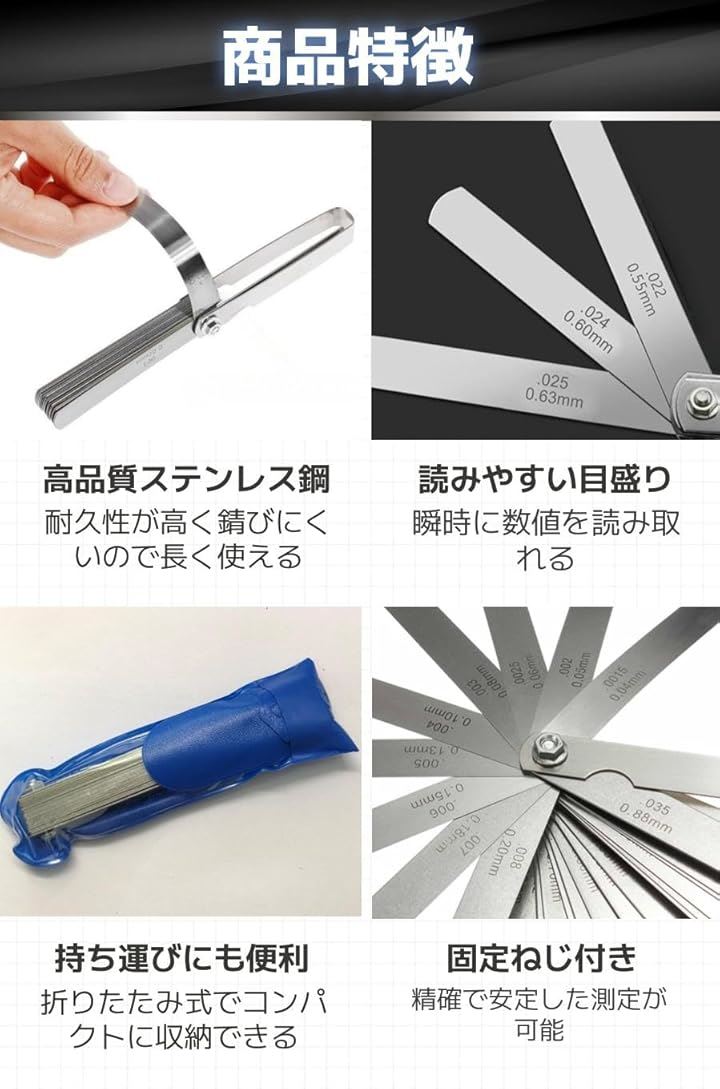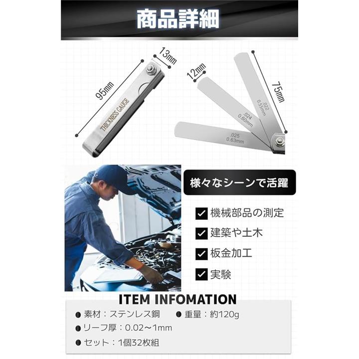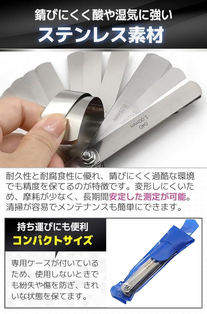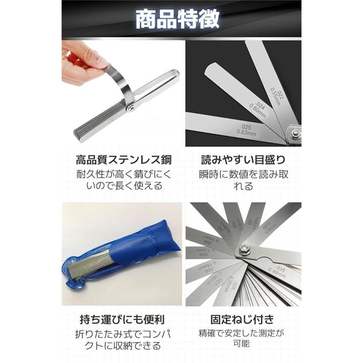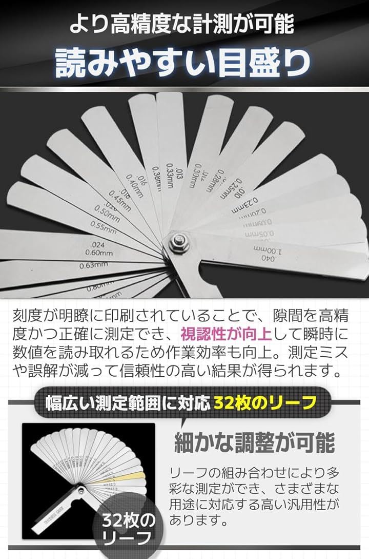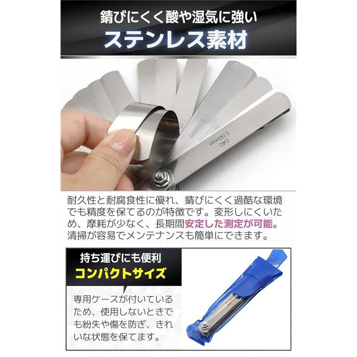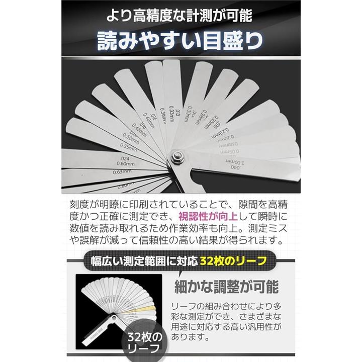 互換品 シックネスゲージ 隙間ゲージ 検査 バイク エンジン 収納袋付き 32枚組