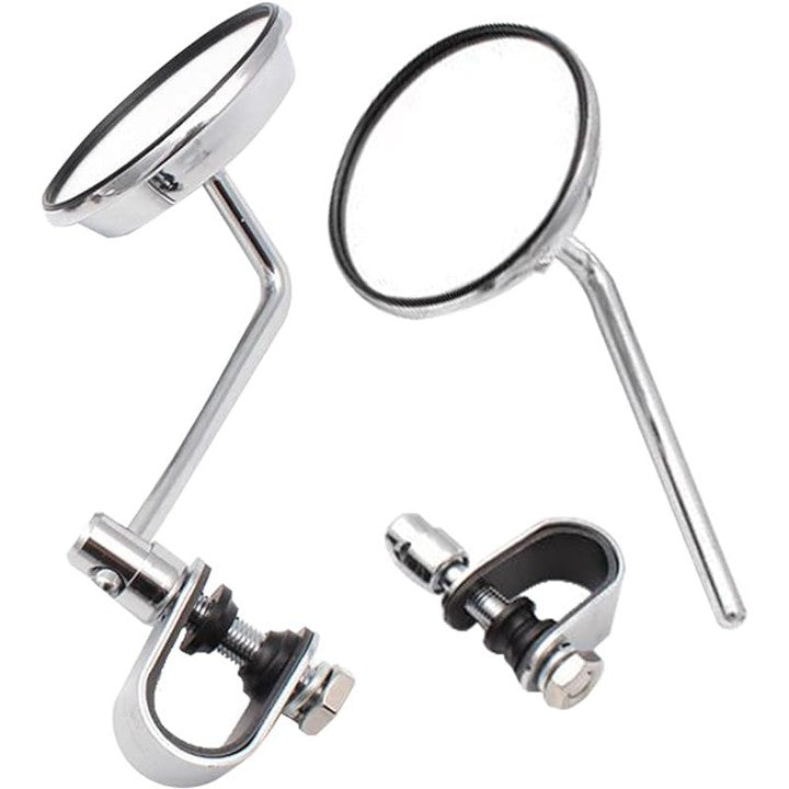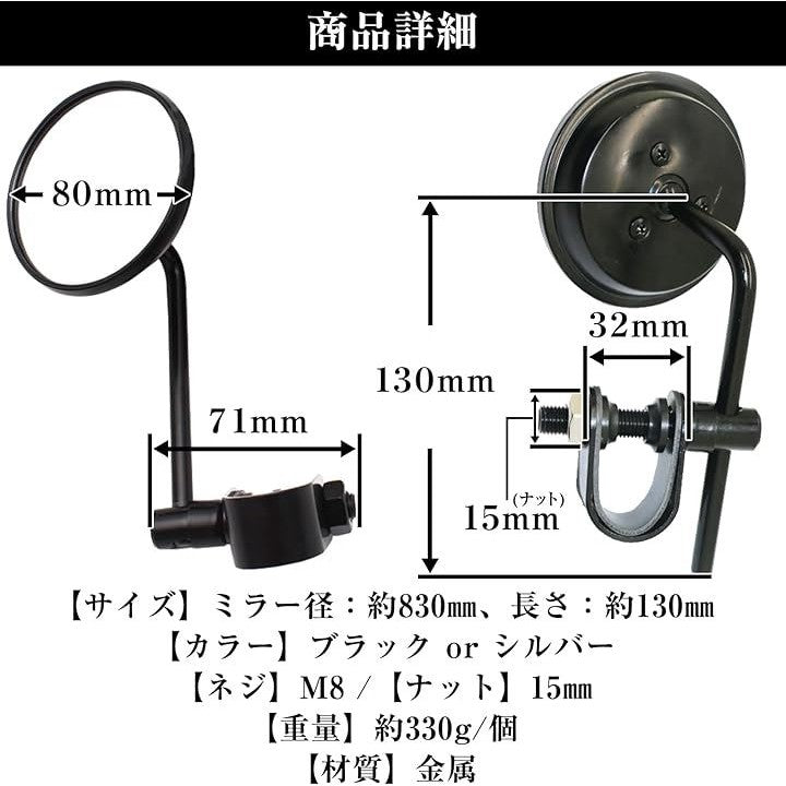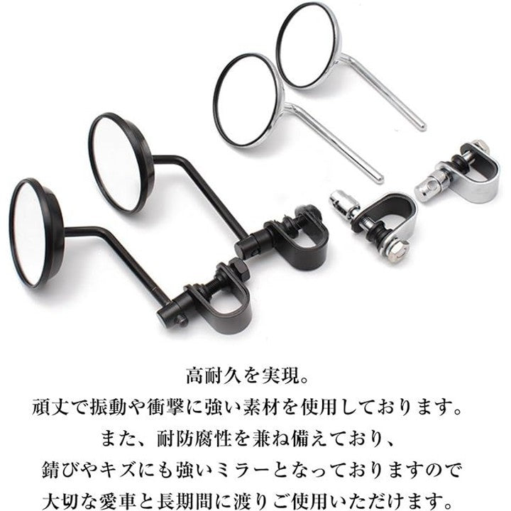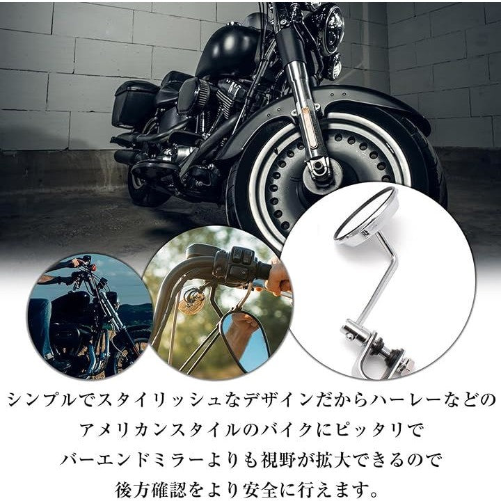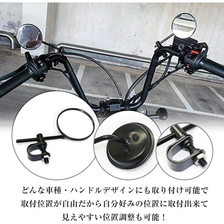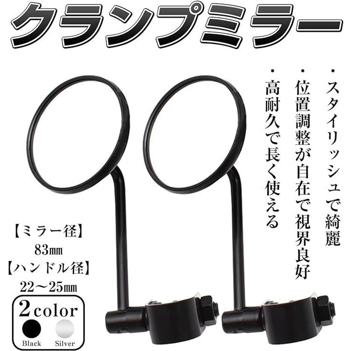 汎用 バイク クランプ ミラー ラウンドミラー ハンドルクランプ アメリカン 旧車 バー 左右セット 鏡面 80mm
