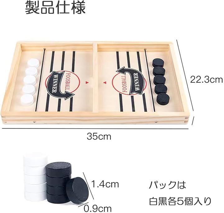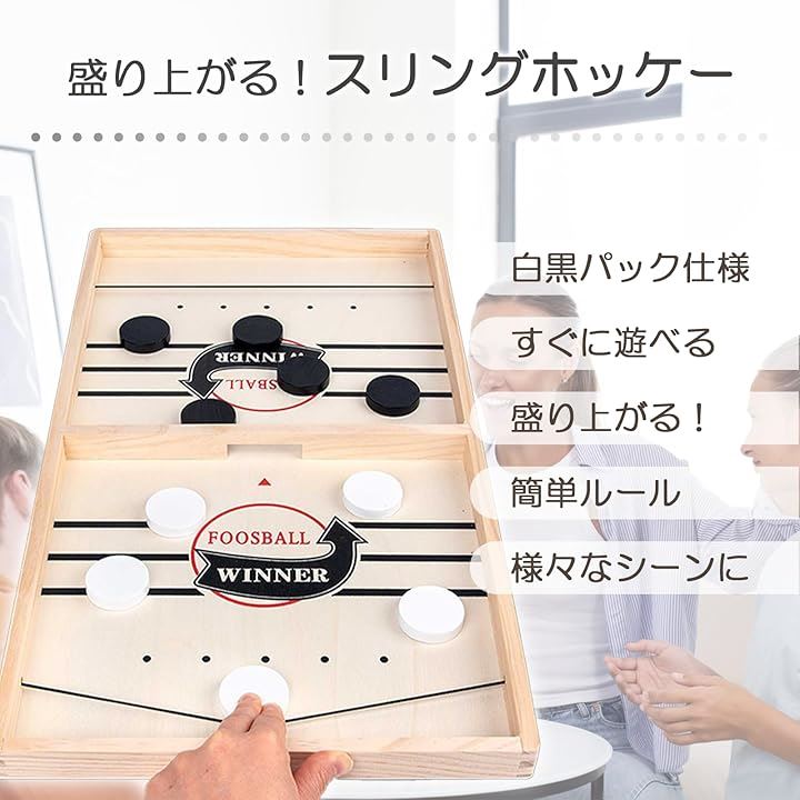 テーブルゲーム スリングホッケー 簡単ルールの 対戦 ホッケーゲーム 白黒パック 22x35cm