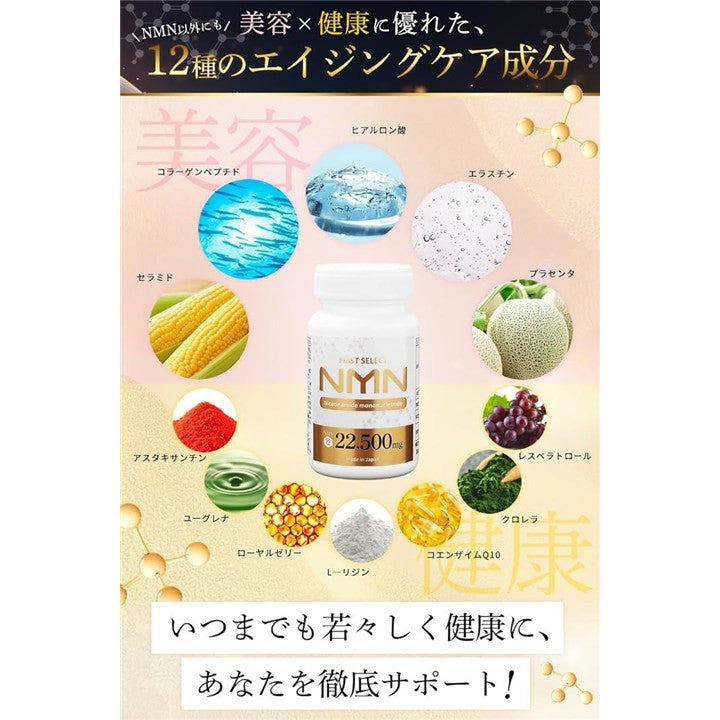 NMN サプリメント 22500mg 高純度99.9% / 日本製 レスベラトロール 高配合 国内GMP認定工場 1粒250mg 腸で吸収される耐酸性カプセル FIRST SELECT ファーストセレクト