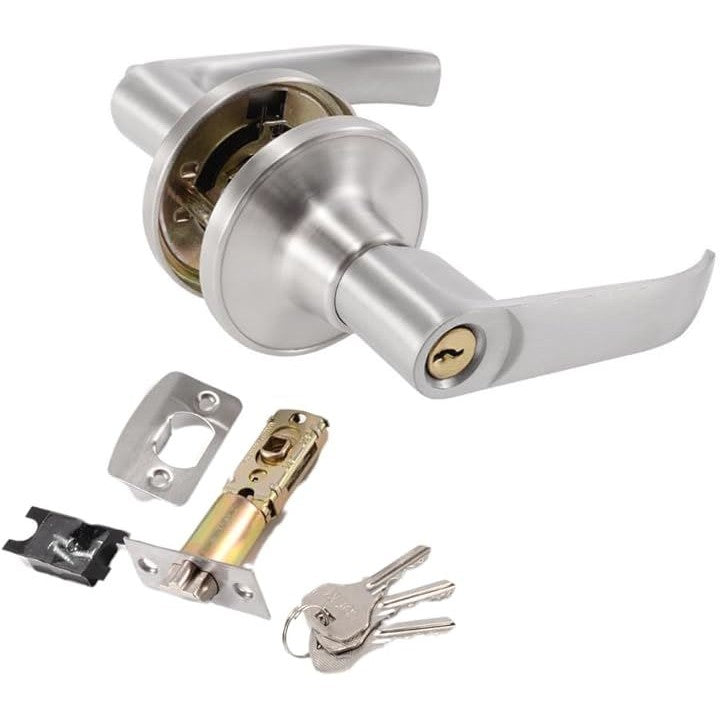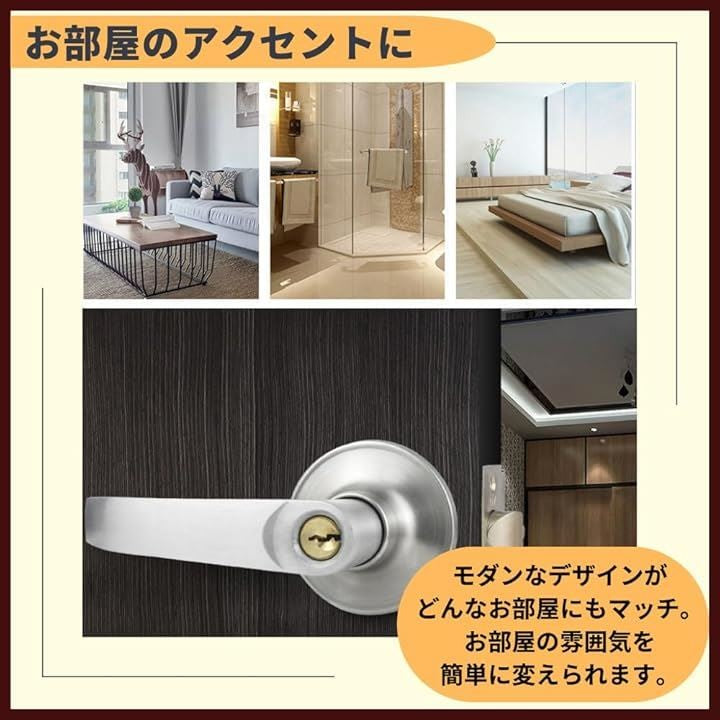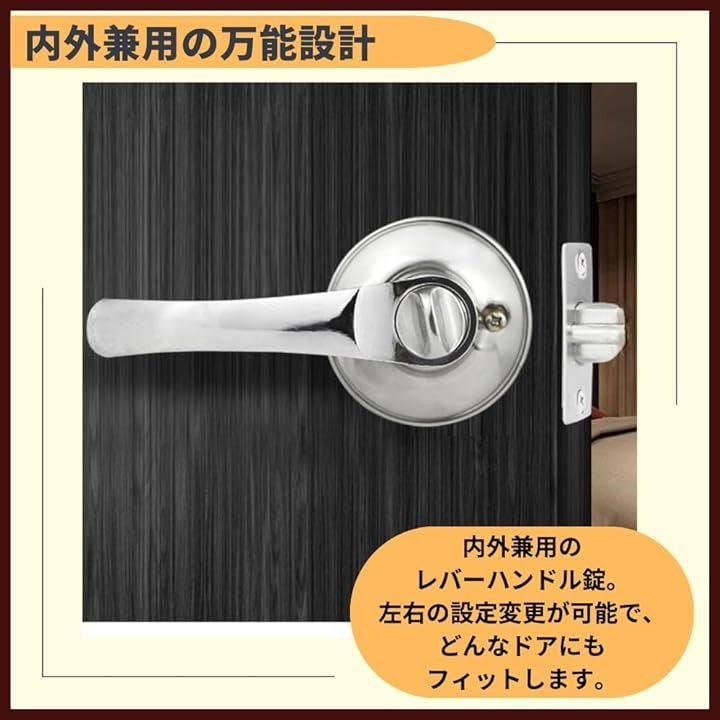 取手 鍵付き ドアノブ 室内 トイレ 寝室 玄関 部屋 屋外 浴室に適用 30~50mm シルバー