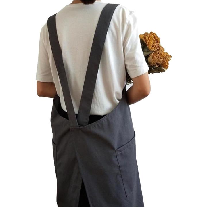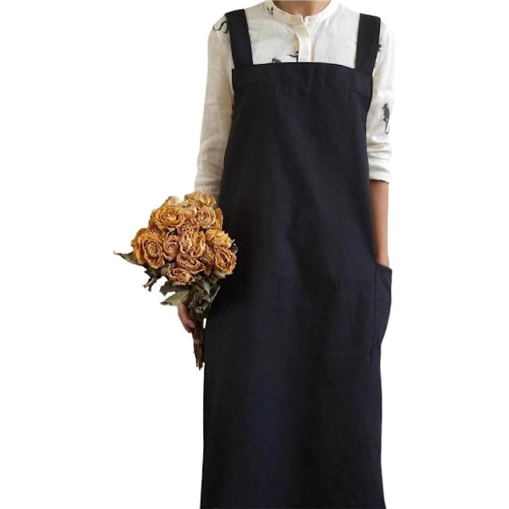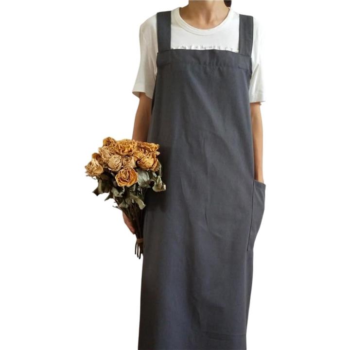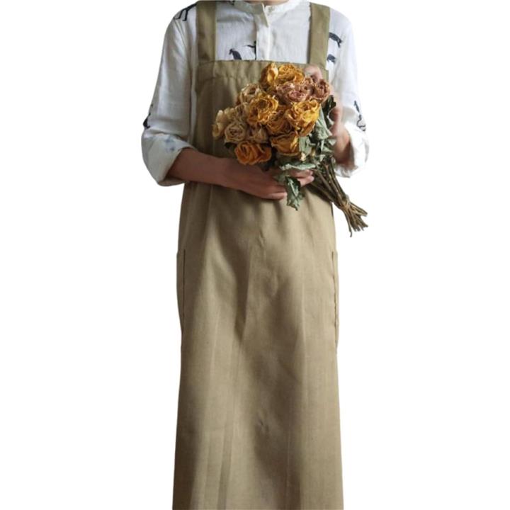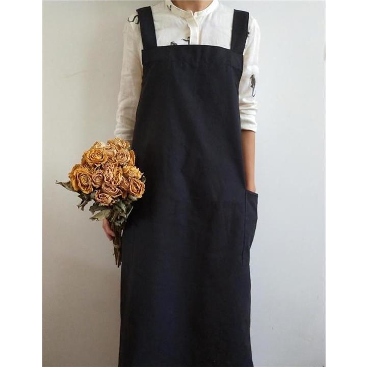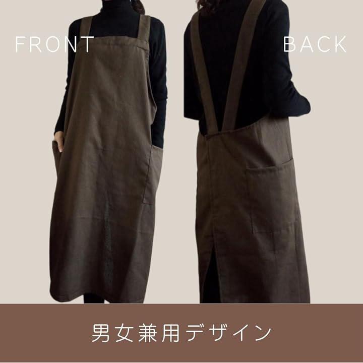 エプロン ワンピースエプロン コットン100% シンプル ロング丈無地 ポケット付き 保育士