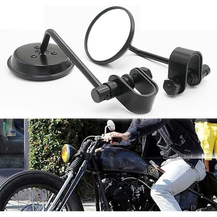 ラウンドミラー ハンドルクランプ バイク汎用 左右 セット ハーレー SR400 丸型 3インチ 8cm 黒 YAMAHA FZX 500 ドラッグスター250 1100 XSR155 700 900